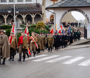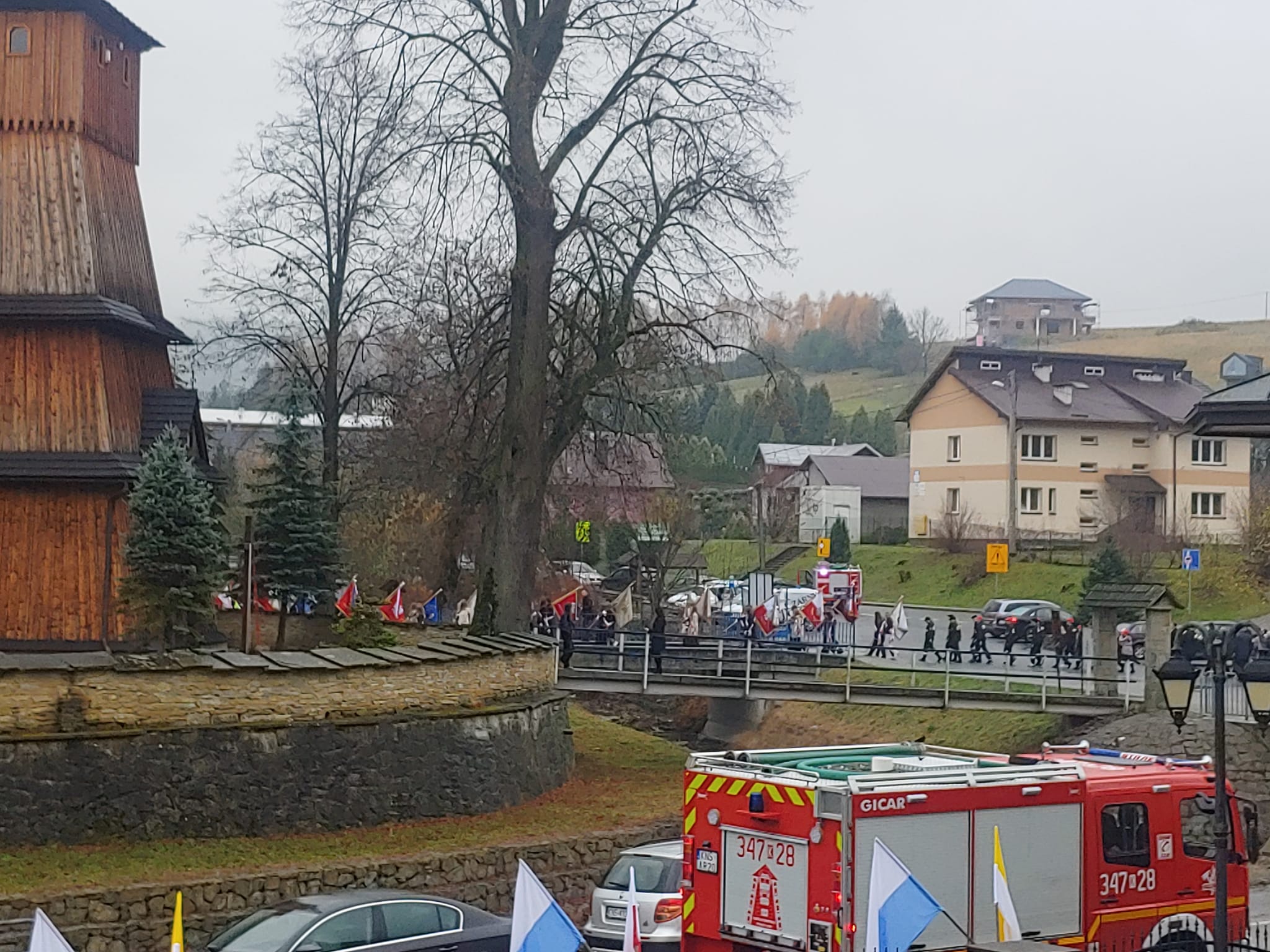 11 listopada w Krużlowej Wyżnej odbyły się uroczyste obchody Narodowego Święta Niepodległości, które w tym roku zorganizowano pod hasłem „Bóg, Honor, Ojczyzna”. Uroczystości rozpoczęła podniosła Msza Święta w Sanktuarium Przemienienia Pańskiego w Krużlowej Wyżnej, celebrowana w intencji poległych za Ojczyznę. W liturgii uczestniczyli mieszkańcy, poczty sztandarowe, delegacje lokalnych instytucji oraz przedstawiciele władz, tworząc atmosferę jedności i patriotycznej wspólnoty. Naszą szkołę reprezentował poczet sztandarowy w składzie: Mikołaj Dryja (kl. VIII b), Natalia Dryja (kl. VIII b) oraz Maja Kubis (kl. VIII b). Obecność uczniów niosących sztandar była wyrazem szacunku wobec historii oraz świadectwem pielęgnowania wartości patriotycznych wśród młodzieży.