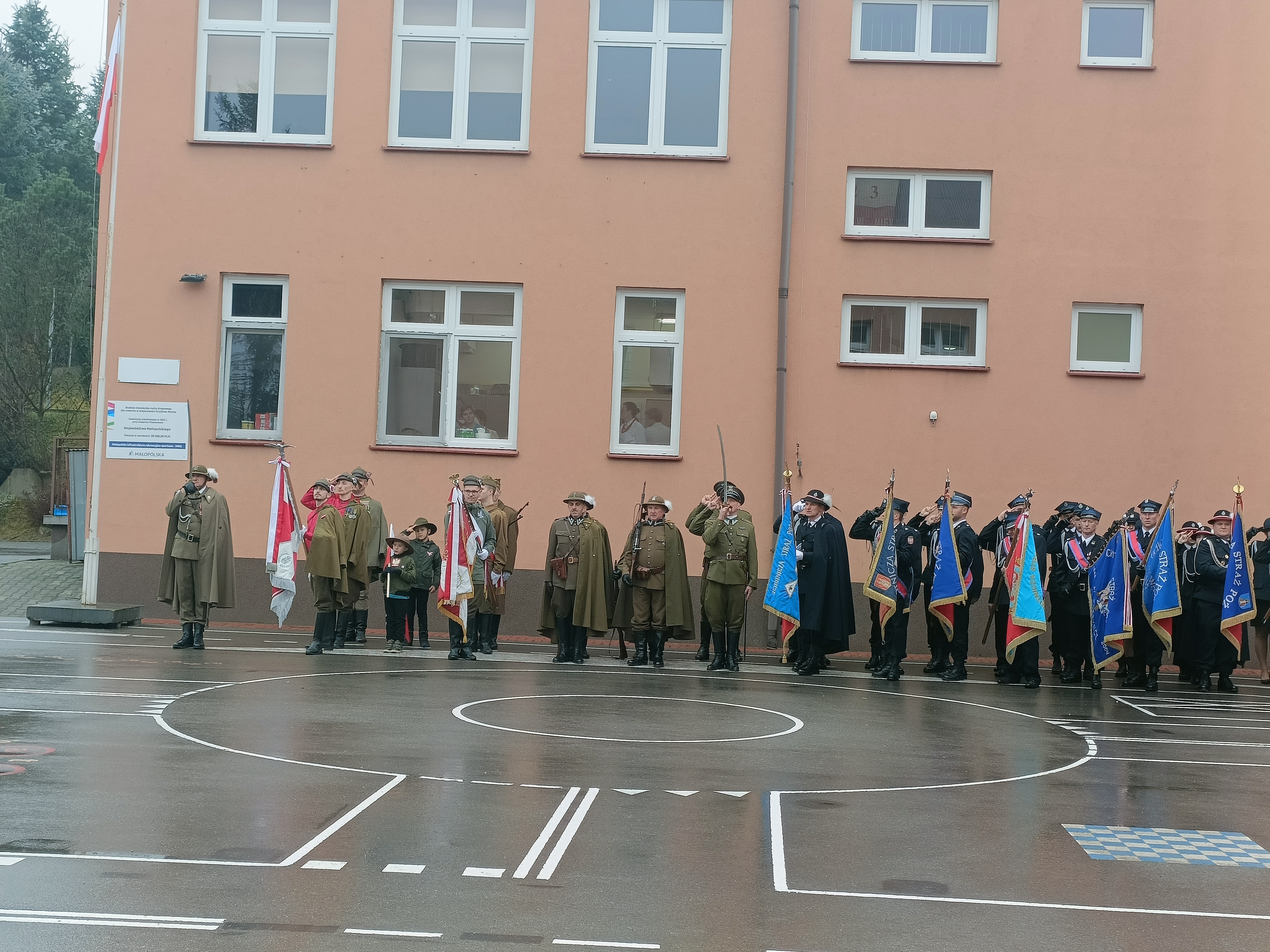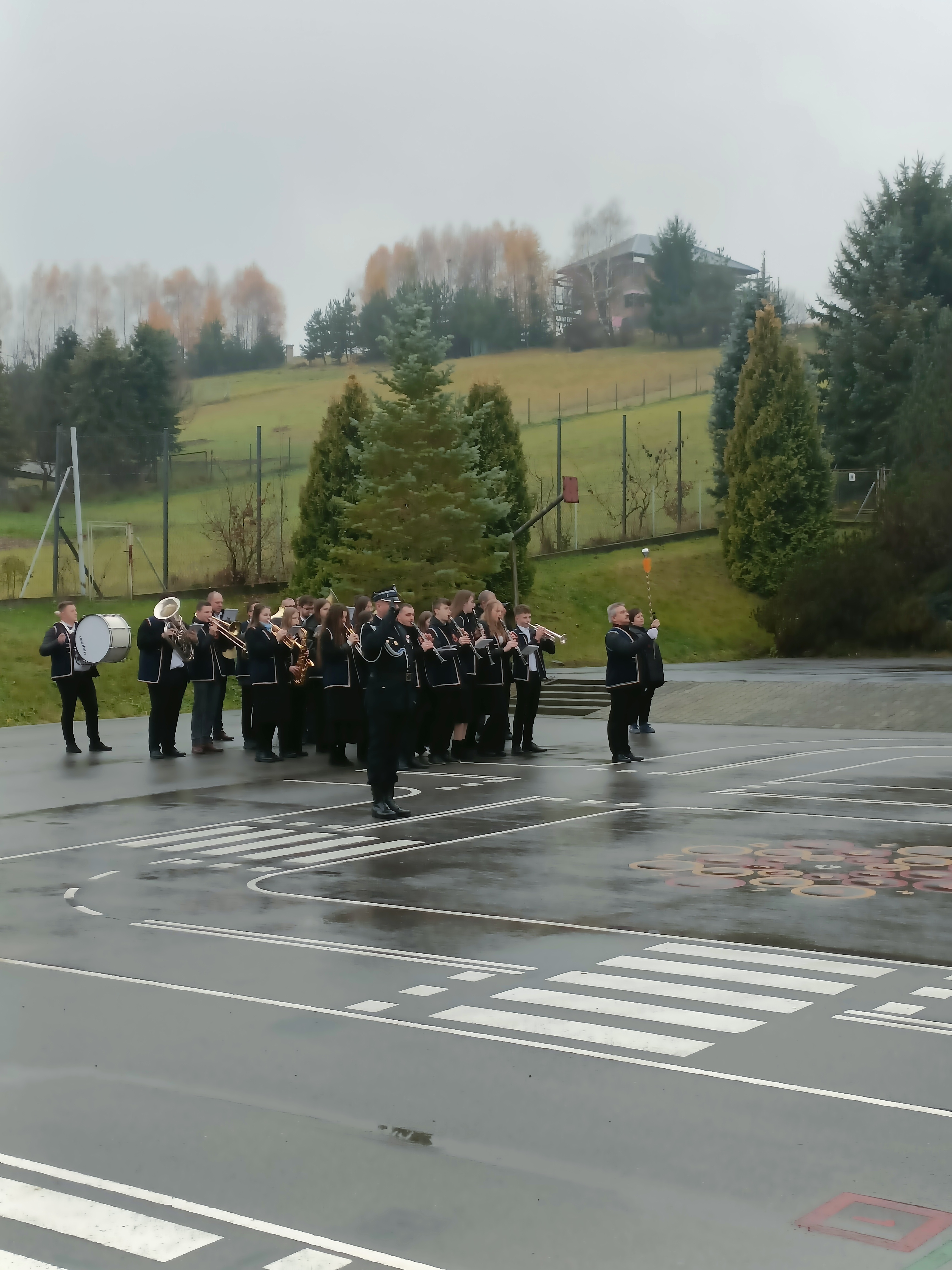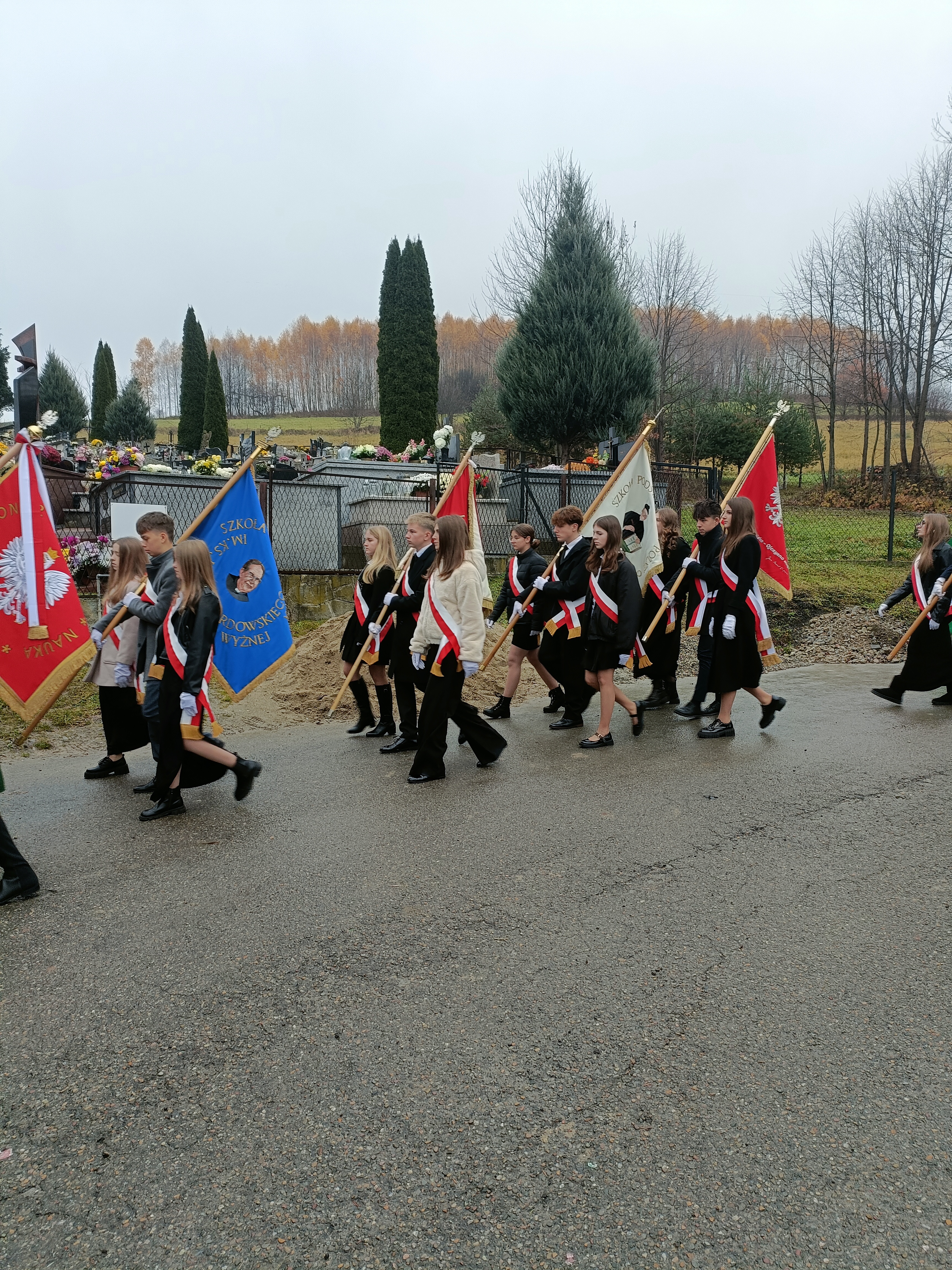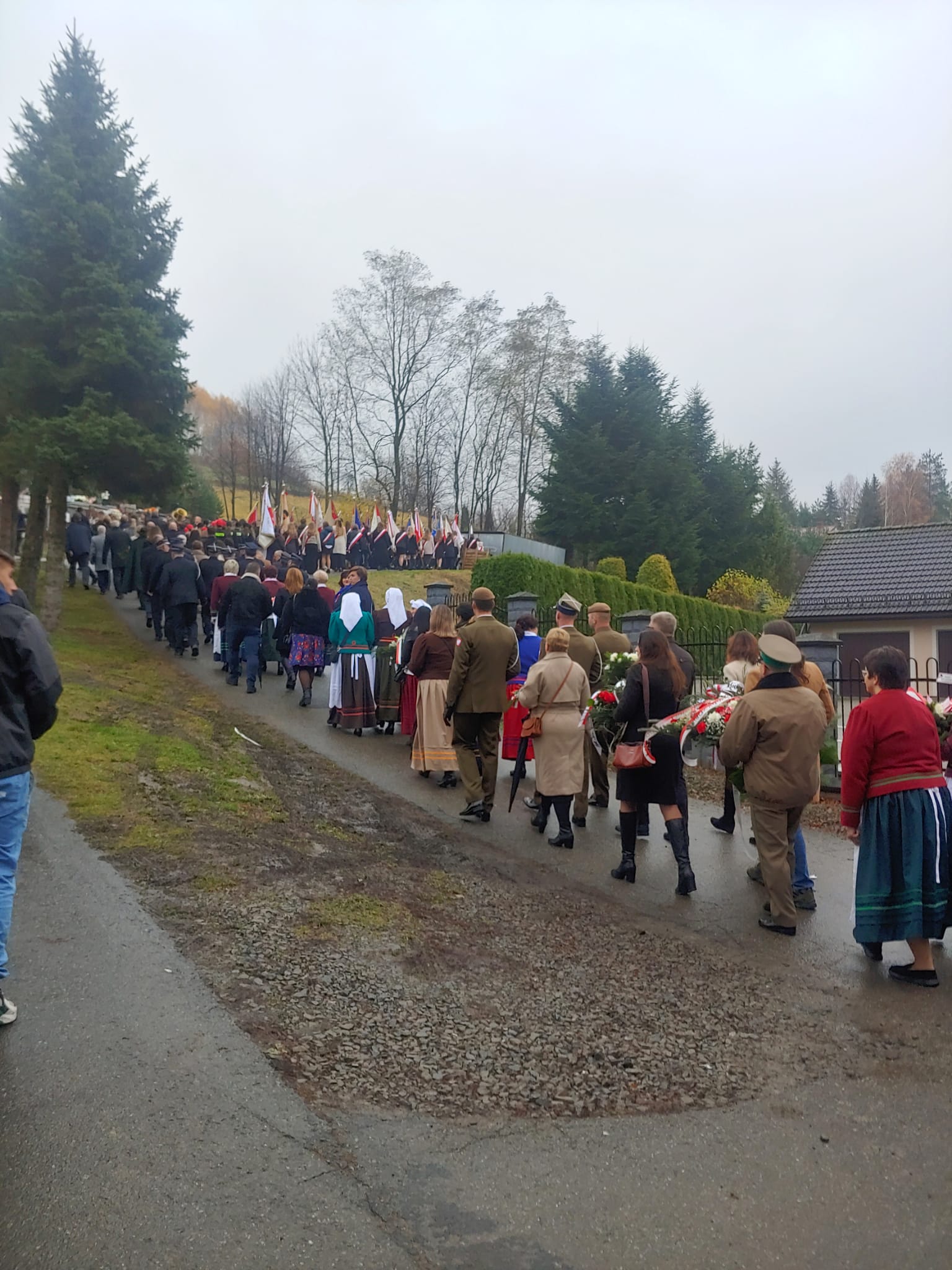Po zakończonej liturgii uczestnicy przeszli na miejscowy cmentarz, gdzie złożono kwiaty pod pomnikiem poległych oraz na grobie lokalnego bohatera – śp. Stanisława Barana, który po wielu latach spoczął w rodzinnej mogile. W tym miejscu odczytano również Niepodległościowy Apel Pamięci, upamiętniający wszystkich Bohaterów, którzy oddali życie za wolną i niepodległą Polskę. Był to moment głębokiej zadumy oraz hołdu dla tych, dzięki którym dziś możemy cieszyć się wolnością. Po zakończeniu Apelu wszyscy uczestnicy uroczystości udali się do budynku Zespołu Szkolno-Przedszkolnego w Krużlowej Wyżnej. Na przyszkolnym placu uroczyście odśpiewano Hymn Polski, dając wyraz jedności i patriotycznej dumy. Następnie wszyscy zgromadzeni udali się na występ artystyczny przygotowany przez uczniów ZSP, który w piękny sposób przypomniał o drodze Polaków do niepodległości oraz znaczeniu wartości, które od pokoleń budują naszą tożsamość narodową.