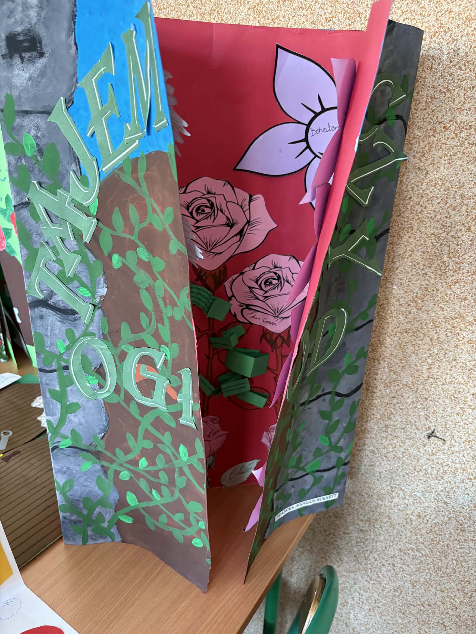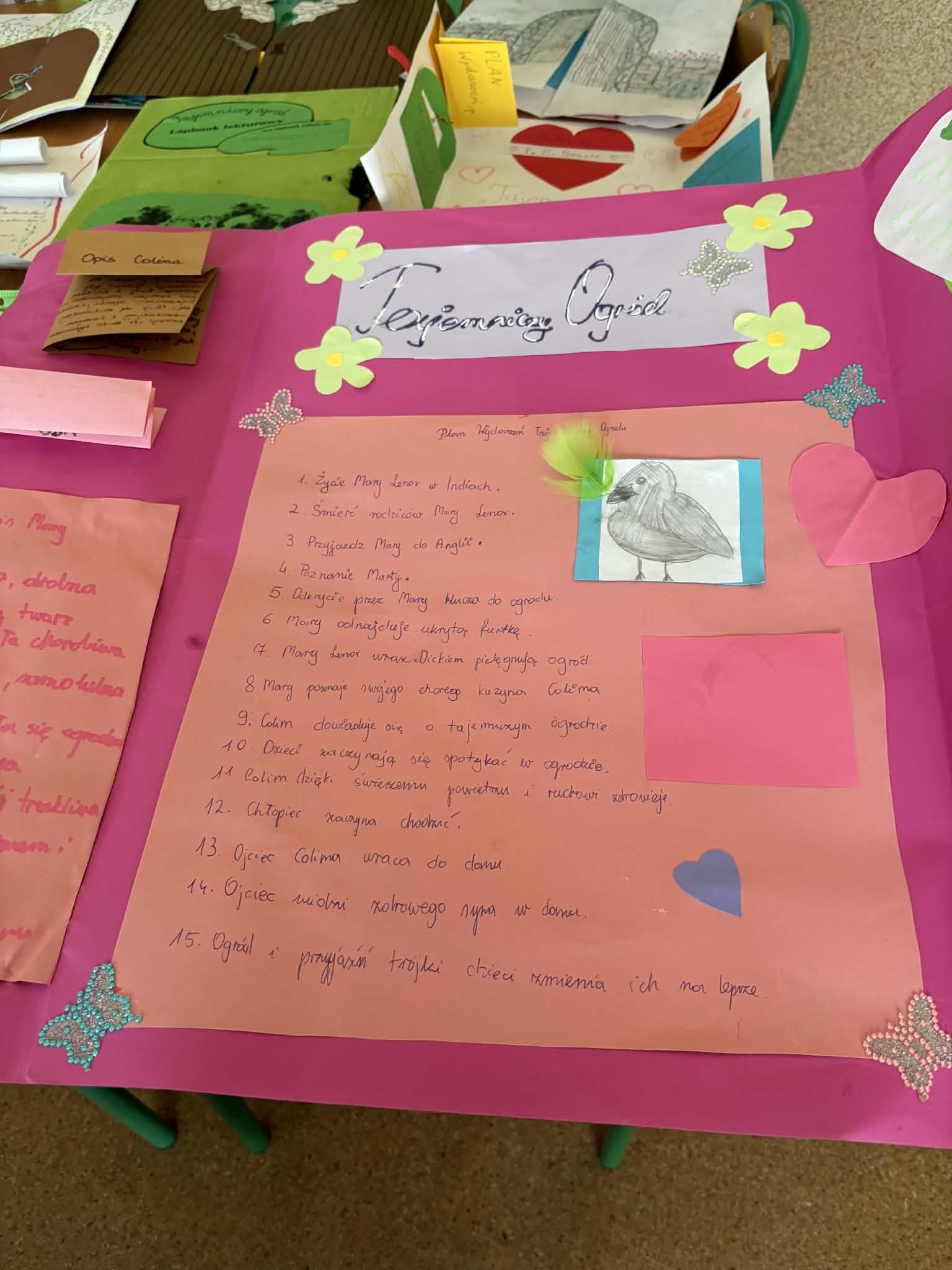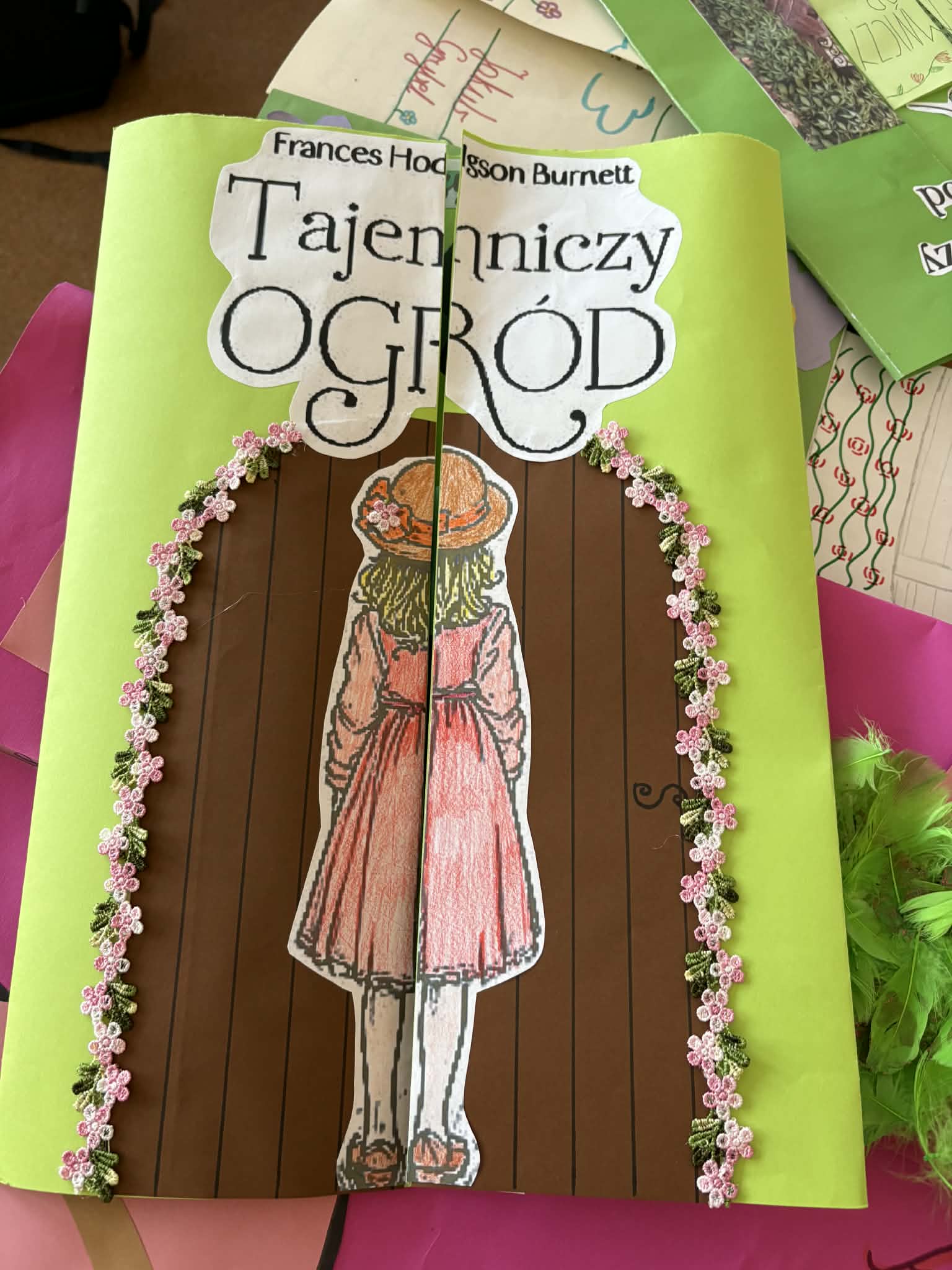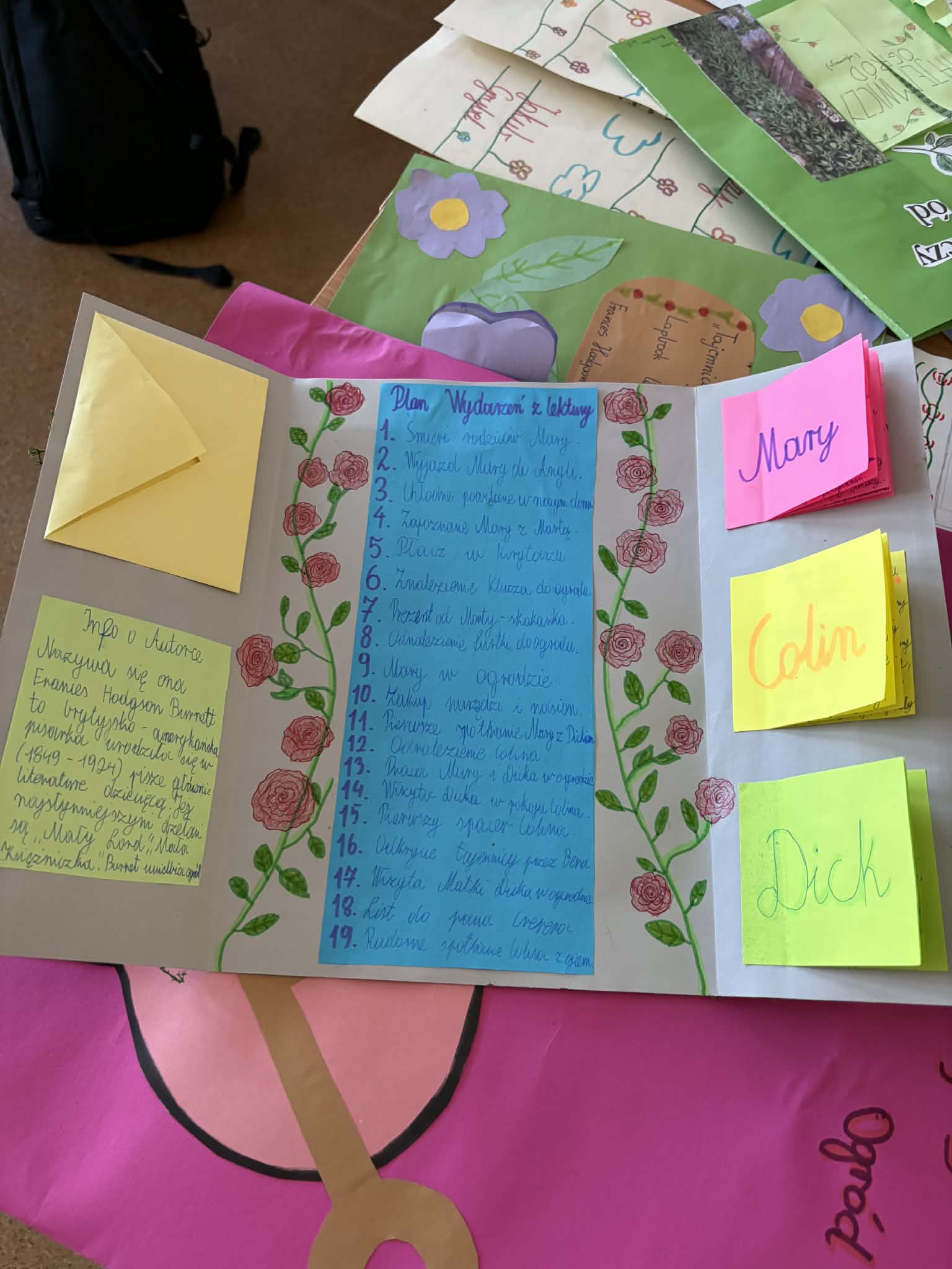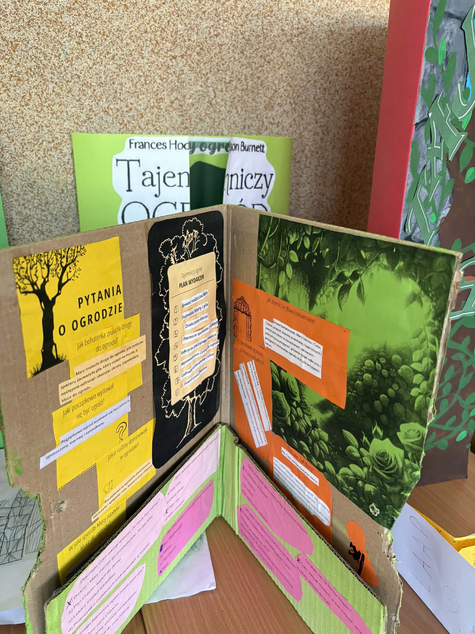 "Tajemniczy ogród" omawiany na lekcjach języka polskiego w klasie 5, stał się doskonałą okazją do zaznajomienia uczniów z ciekawą formą pracy, jaką jest lapbook. Co to jest lapbook? Jest czymś w rodzaju teczki tematycznej, w której możemy umieścić wiadomości na wybrany temat. Taka teczka pełni funkcję interaktywnej przestrzeni na rysunki, opowiadania, wykresy, słówka, terminy czy zdjęcia. To wszystko umieszczone jest w kieszonkach, książeczkach o przeróżnych kształtach i na karteczkach.