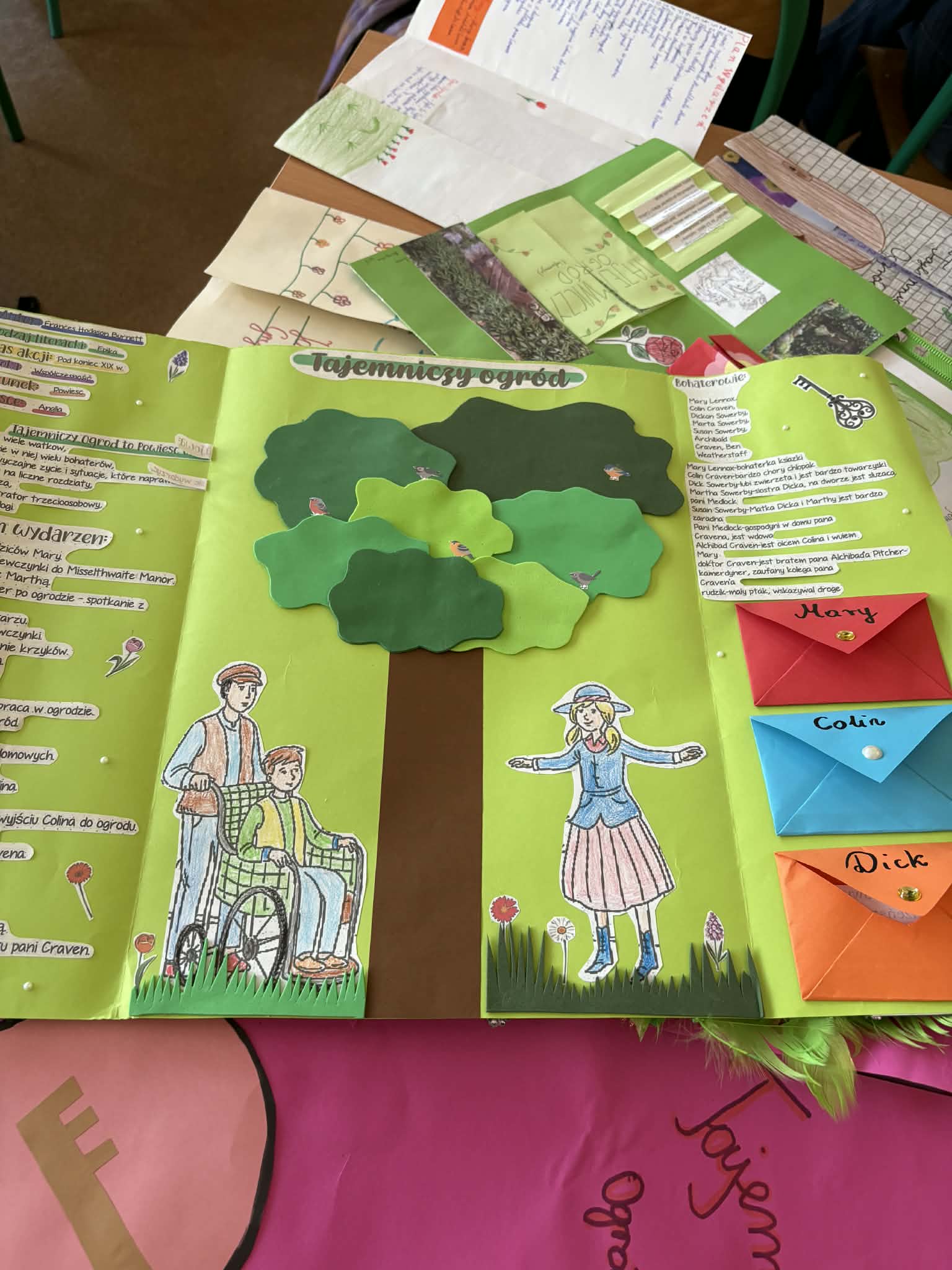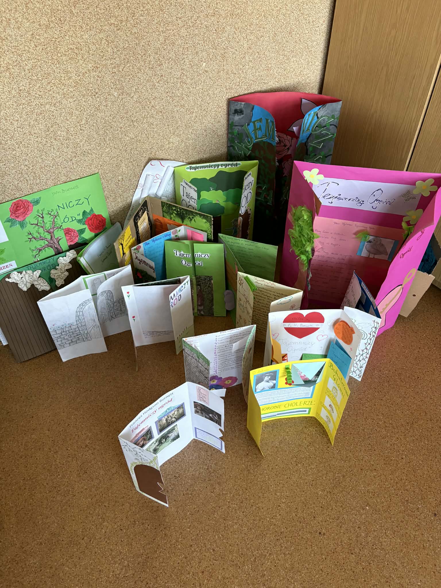 "Tajemniczy ogród" omawiany na lekcjach języka polskiego w klasie 5, stał się doskonałą okazją do zaznajomienia uczniów z ciekawą formą pracy, jaką jest lapbook. Co to jest lapbook? Jest czymś w rodzaju teczki tematycznej, w której możemy umieścić wiadomości na wybrany temat. Taka teczka pełni funkcję interaktywnej przestrzeni na rysunki, opowiadania, wykresy, słówka, terminy czy zdjęcia. To wszystko umieszczone jest w kieszonkach, książeczkach o przeróżnych kształtach i na karteczkach.