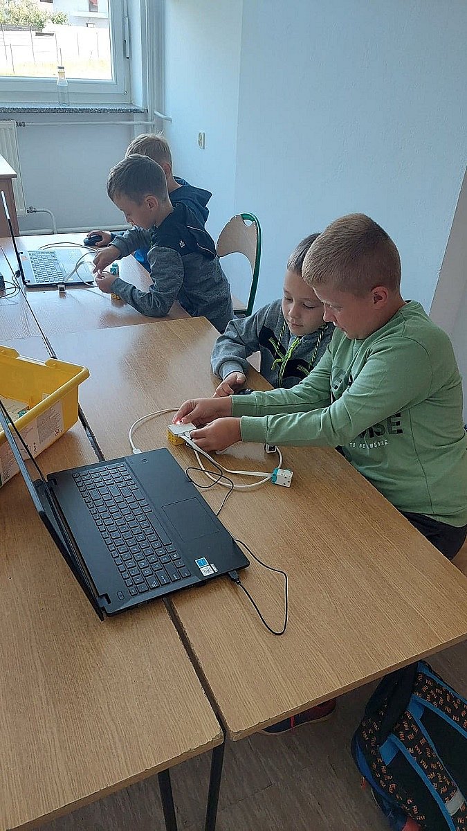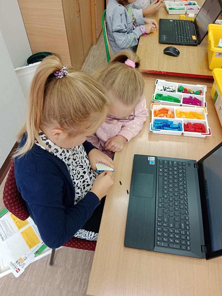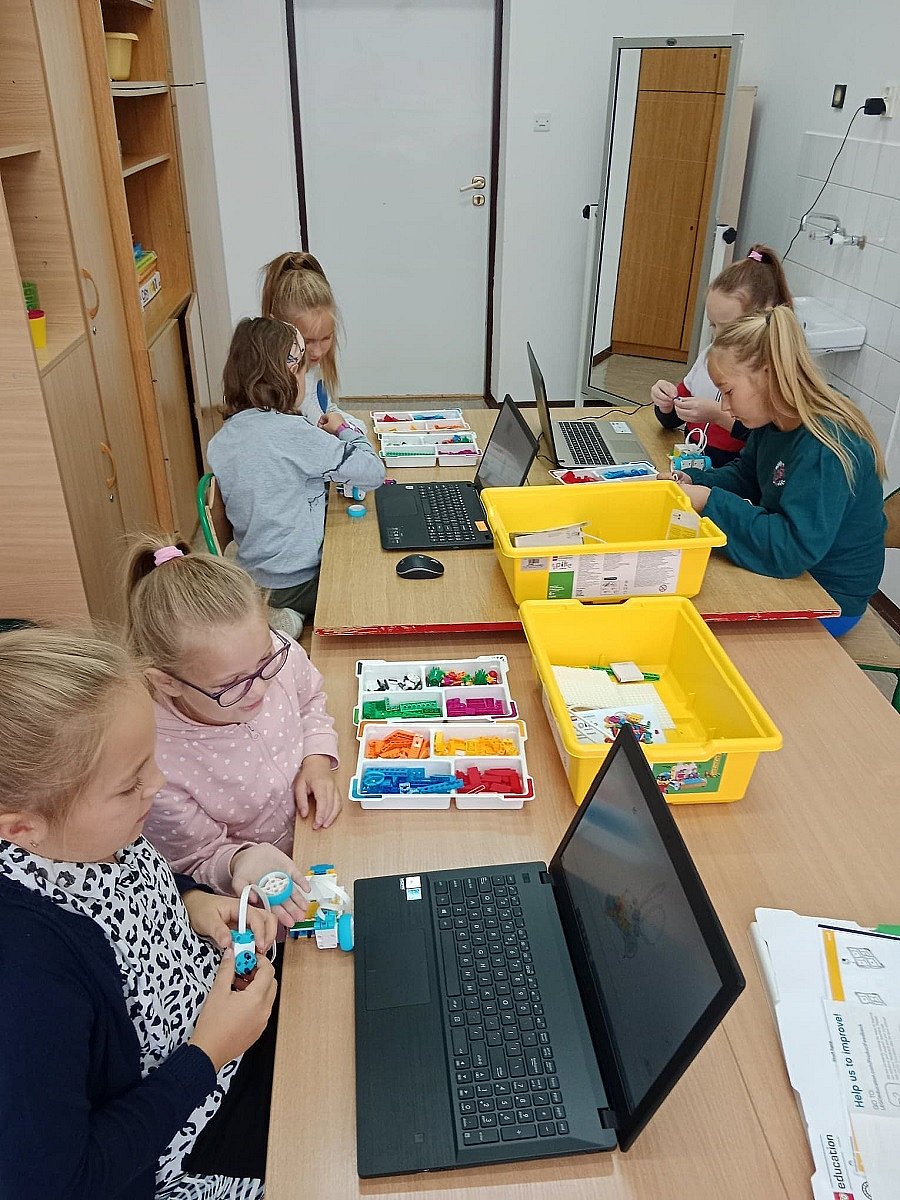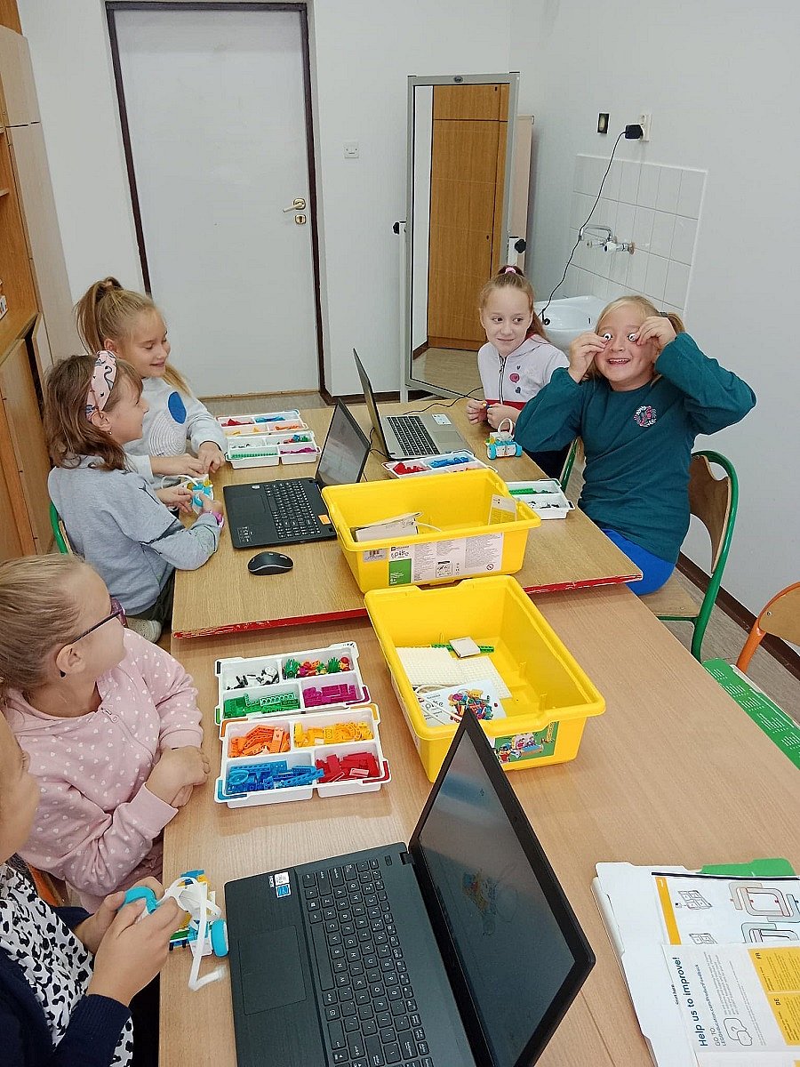 W bieżącym roku szkolnym rozpoczęliśmy realizację zajęć z robotyki w ramach projektu Laboratoria Przyszłości. W zajęciach, które rozwijają sprawność manualną, myślenie przestrzenne, wyobraźnię oraz wprowadzają w świat programowania, uczestniczą uczniowie klas: IIa, IIIb, VI oraz VIII. Dzieci w małych grupach pracują nad zbudowaniem robota, a następnie programują go z wykorzystaniem aplikacji. Zajęcia cieszą się dużym zainteresowaniemuczniów,wszyscy z ogromnym przejęciem i zaangażowaniem konstruują swoje roboty, co przynosi satysfakcję nie tylko uczniom, ale i nam - nauczycielom. Bardzo przyjemnie jest patrzeć jak uczniowie współpracują ze sobą i rozwijają logiczne myślenie, a pod koniec zajęć skonstruowane i zaprogramowane pojazdy „ruszają w drogę.”