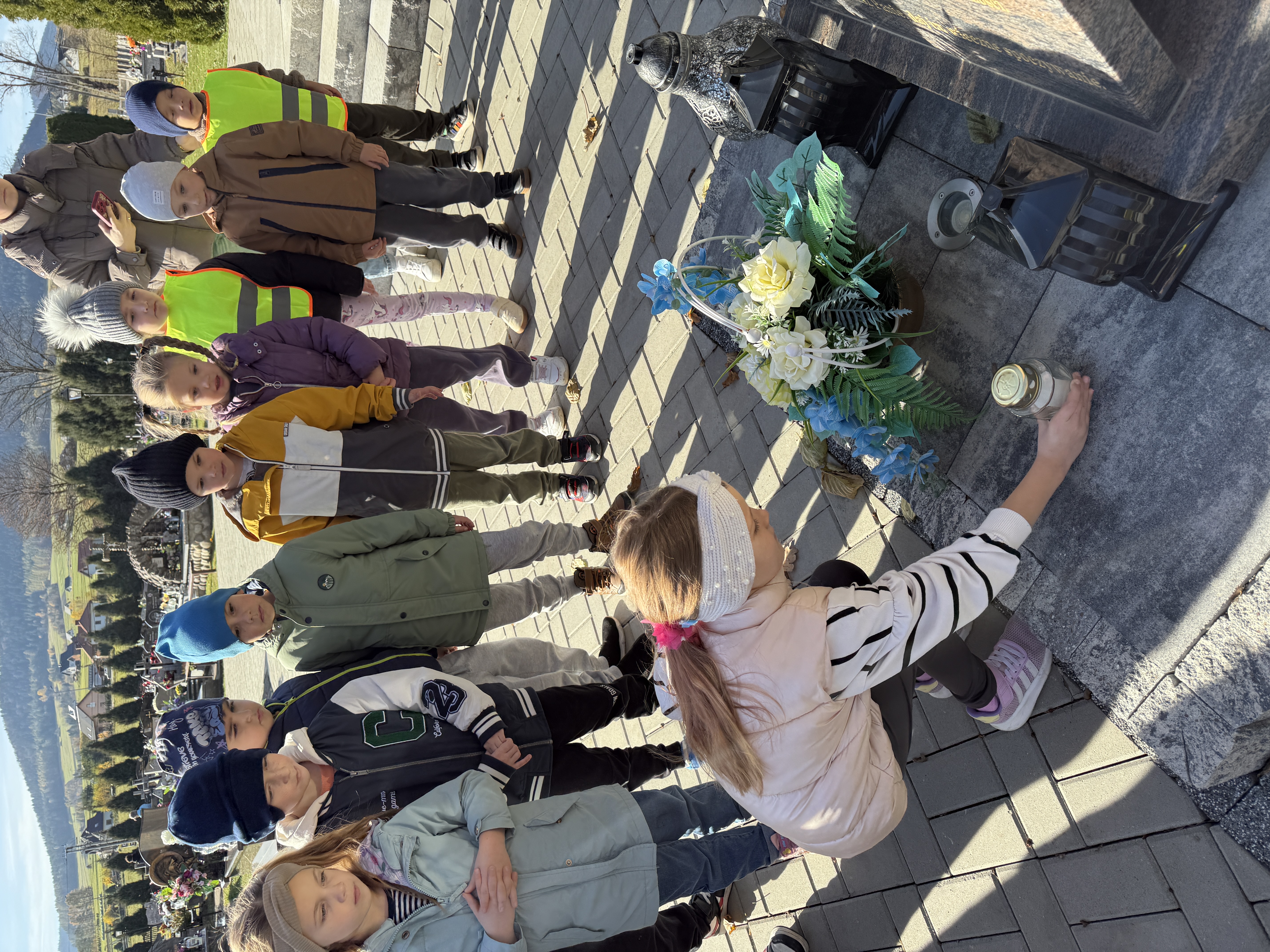 31 października dzieci z grupy II i III wybraÅ‚y siÄ™ na spacer na cmentarz wojenny i cmentarz parafialny. Przy pomniku na cmentarzu wojennym i przy krzyżu na cmentarzu parafialnym dzieci zapaliÅ‚y znicze, aby uczcić pamięć wszystkich, którzy dawno temu walczyli o naszÄ… wolność.