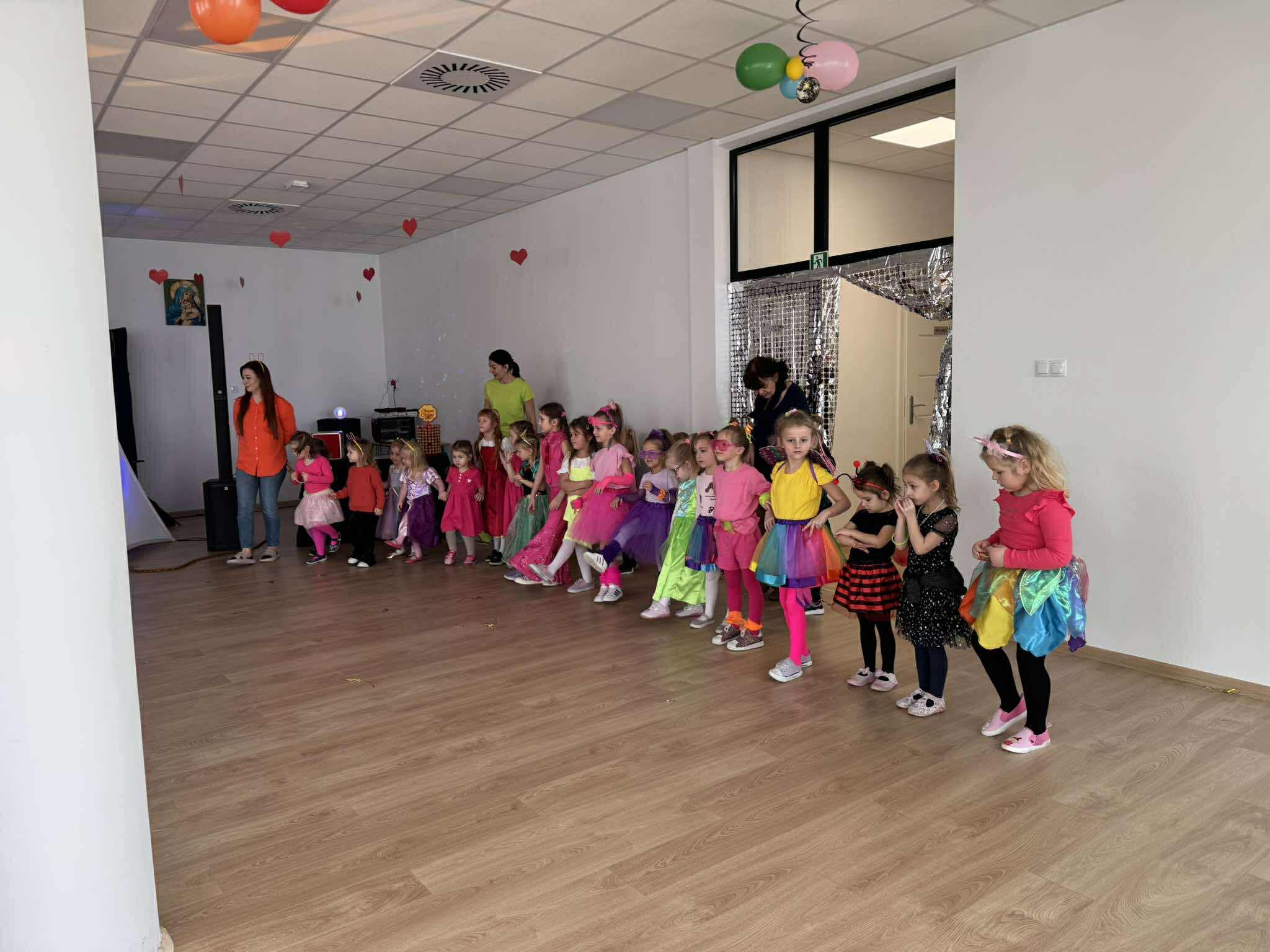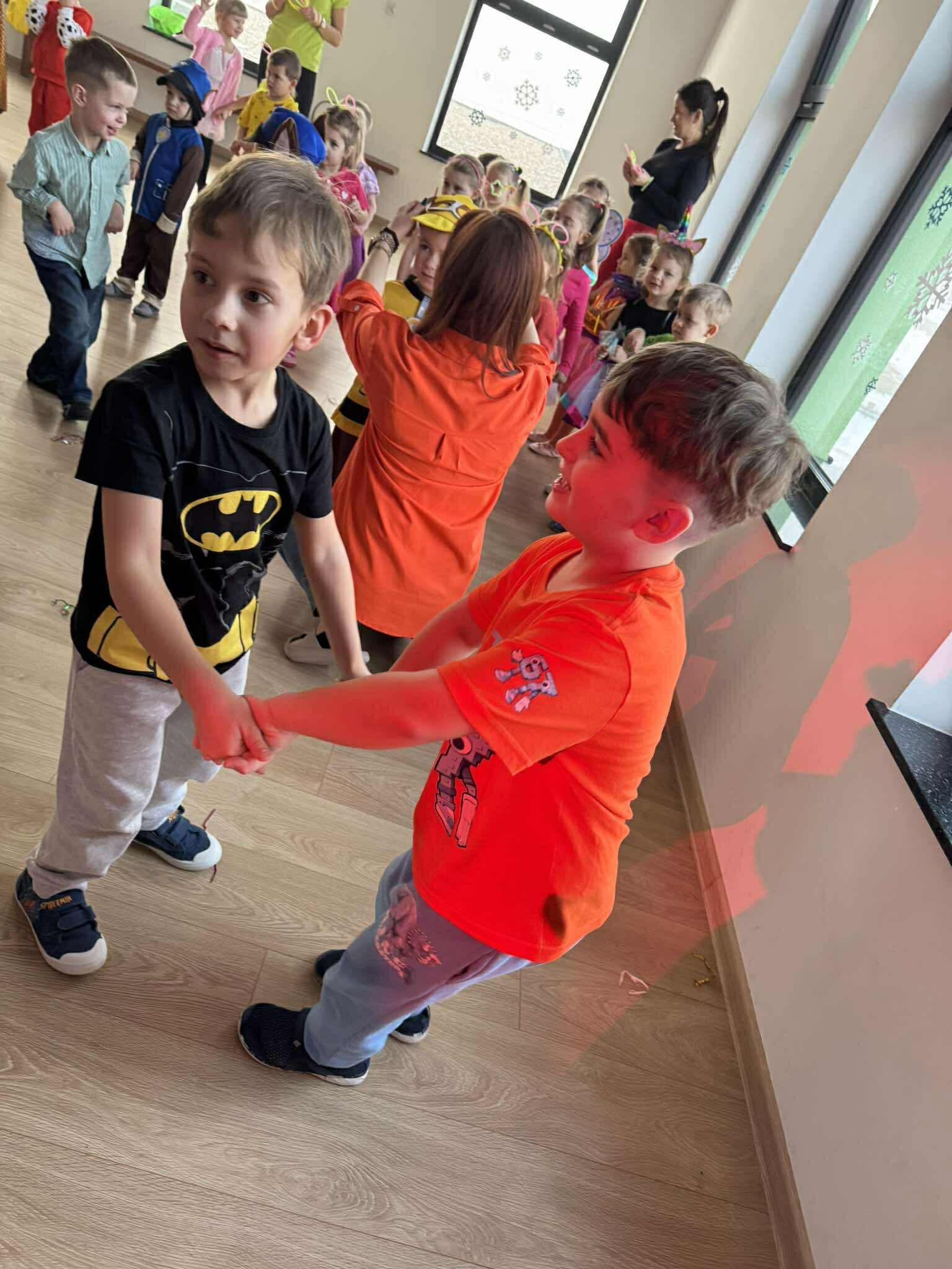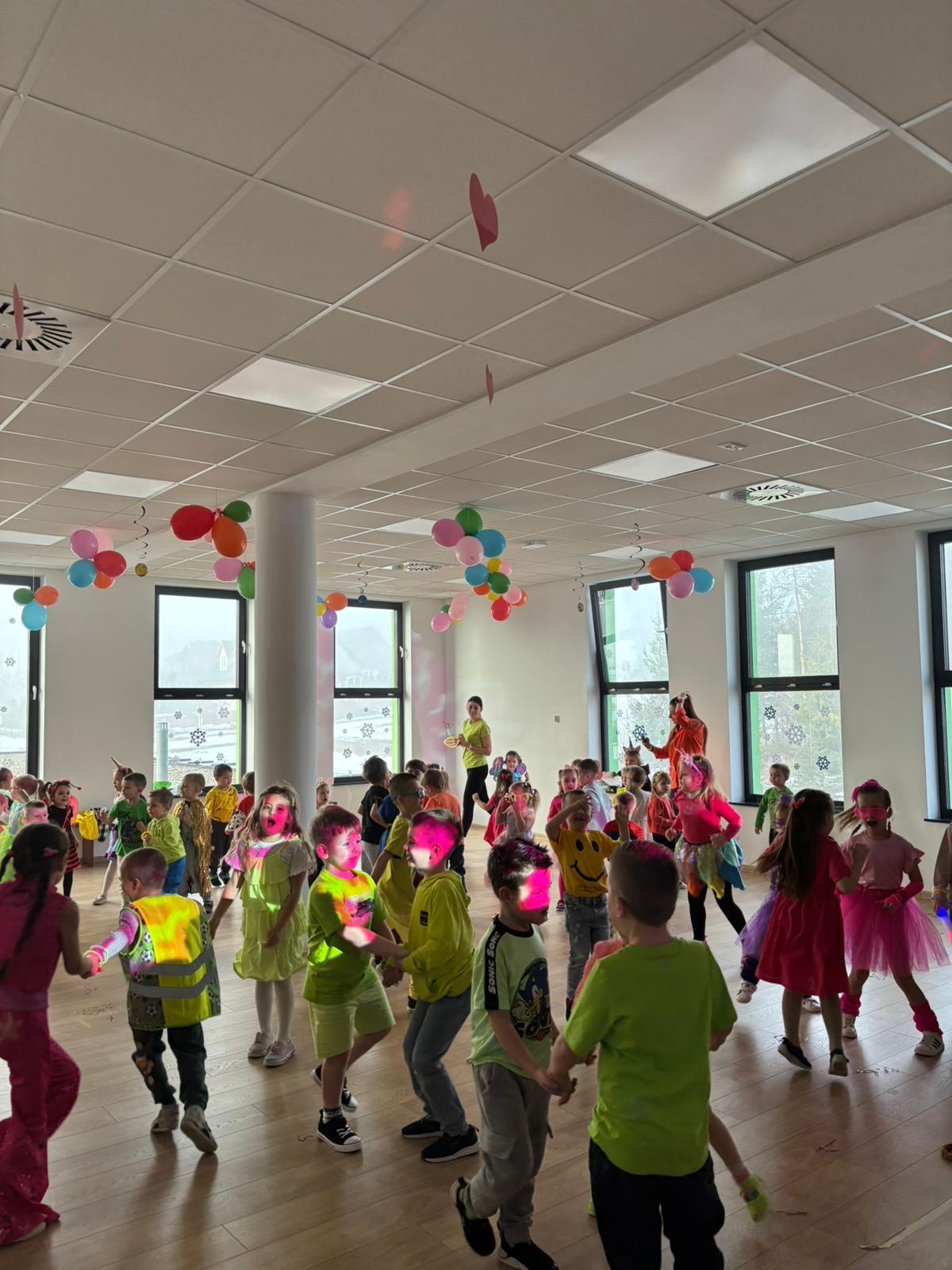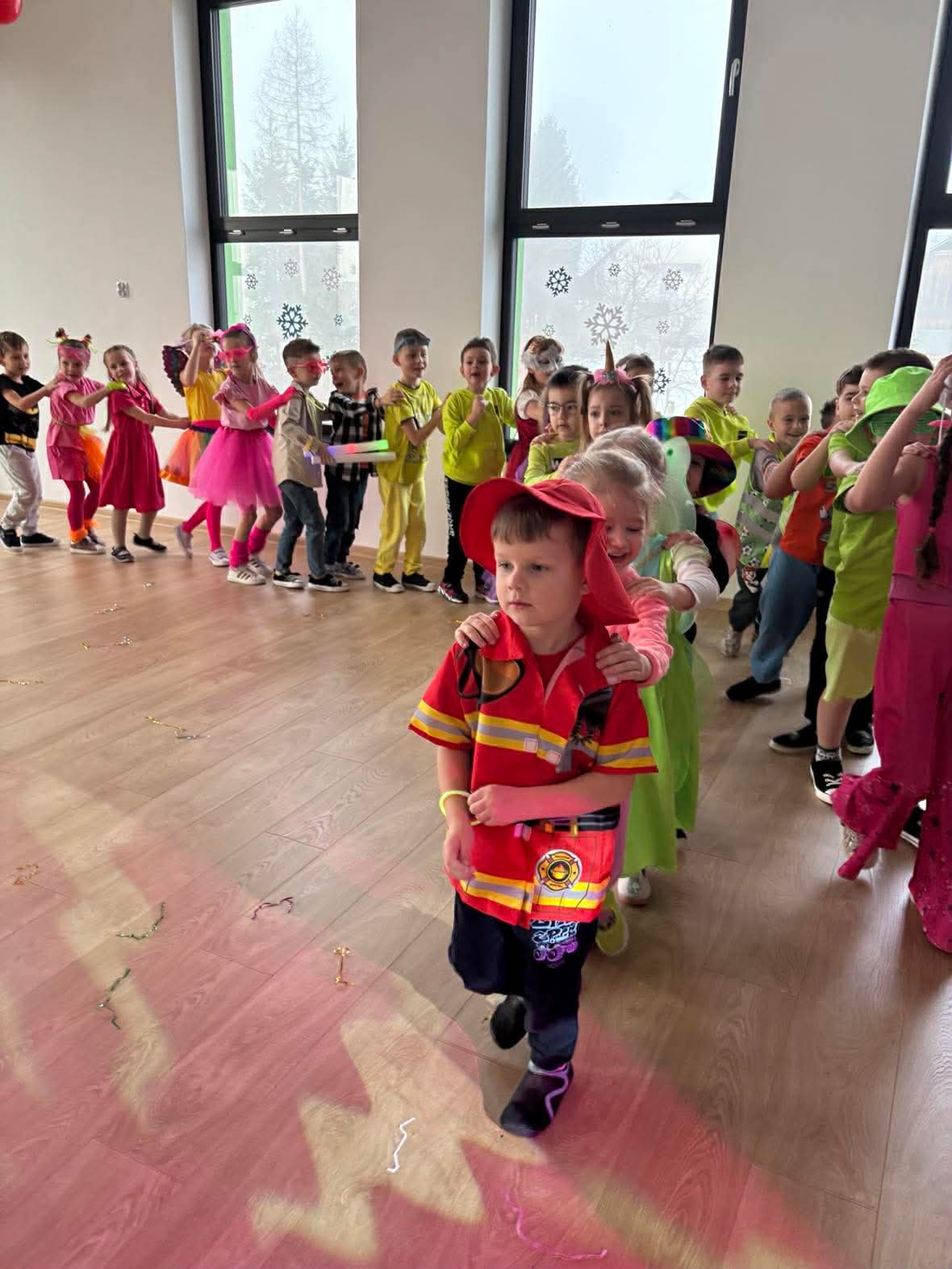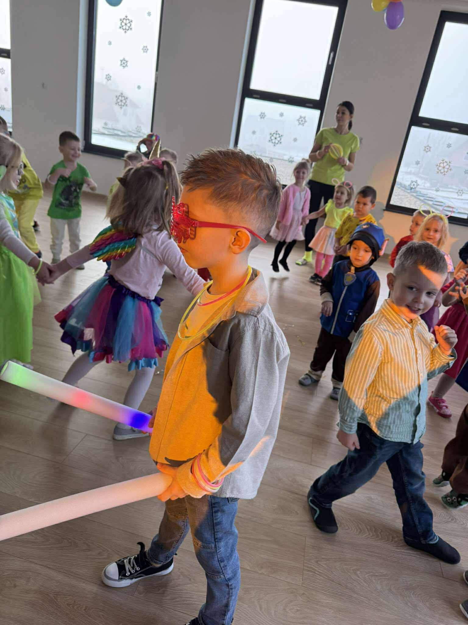 Karnawałowa zabawa w naszym przedszkolu upłynęła pod znakiem neonowych kolorów, świetnej muzyki i niespożytej energii najmłodszych. Przedszkolaki zachwyciły pomysłowymi strojami i z radością ruszyły na parkiet. Wspaniałą atmosferę zapewnił DJ, a po tanecznych szaleństwach na dzieci czekał pyszny poczęstunek przygotowany przez Rodziców. Serdecznie dziękujemy naszym Przedszkolakom za cudowną zabawę oraz Rodzicom i Radzie Rodziców za wsparcie i zaangażowanie.