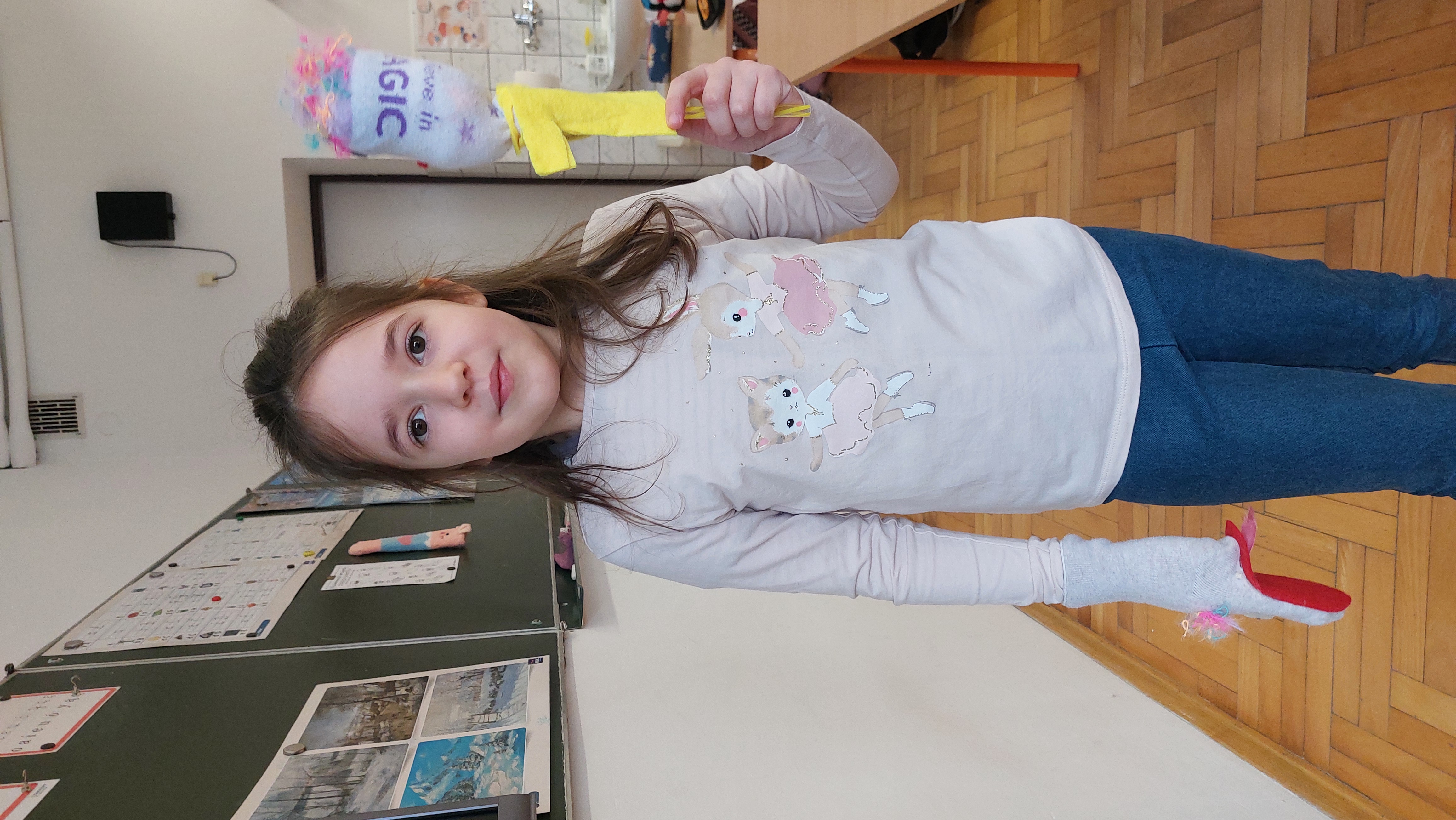 Najwięcej radości sprawiło uczniom wykonanie własnej skarpetki – pacynki oraz wymyślenie jej historii. Dzieci wykazały się ogromną kreatywnością i poczuciem humoru – powstały bardzo pomysłowe postacie i niezwykle zabawne opowieści oraz zabawne rymowane wiersze. Podsumowując pracę z lekturą, rozmawialiśmy o odwadze i spełnianiu marzeń. Uczniowie zauważyli, że bohaterowie książki nie bali się podejmować wyzwań i realizować swoich planów. Była to cenna lekcja, która pokazała, że warto wierzyć w siebie i dążyć do realizacji swoich marzeń.