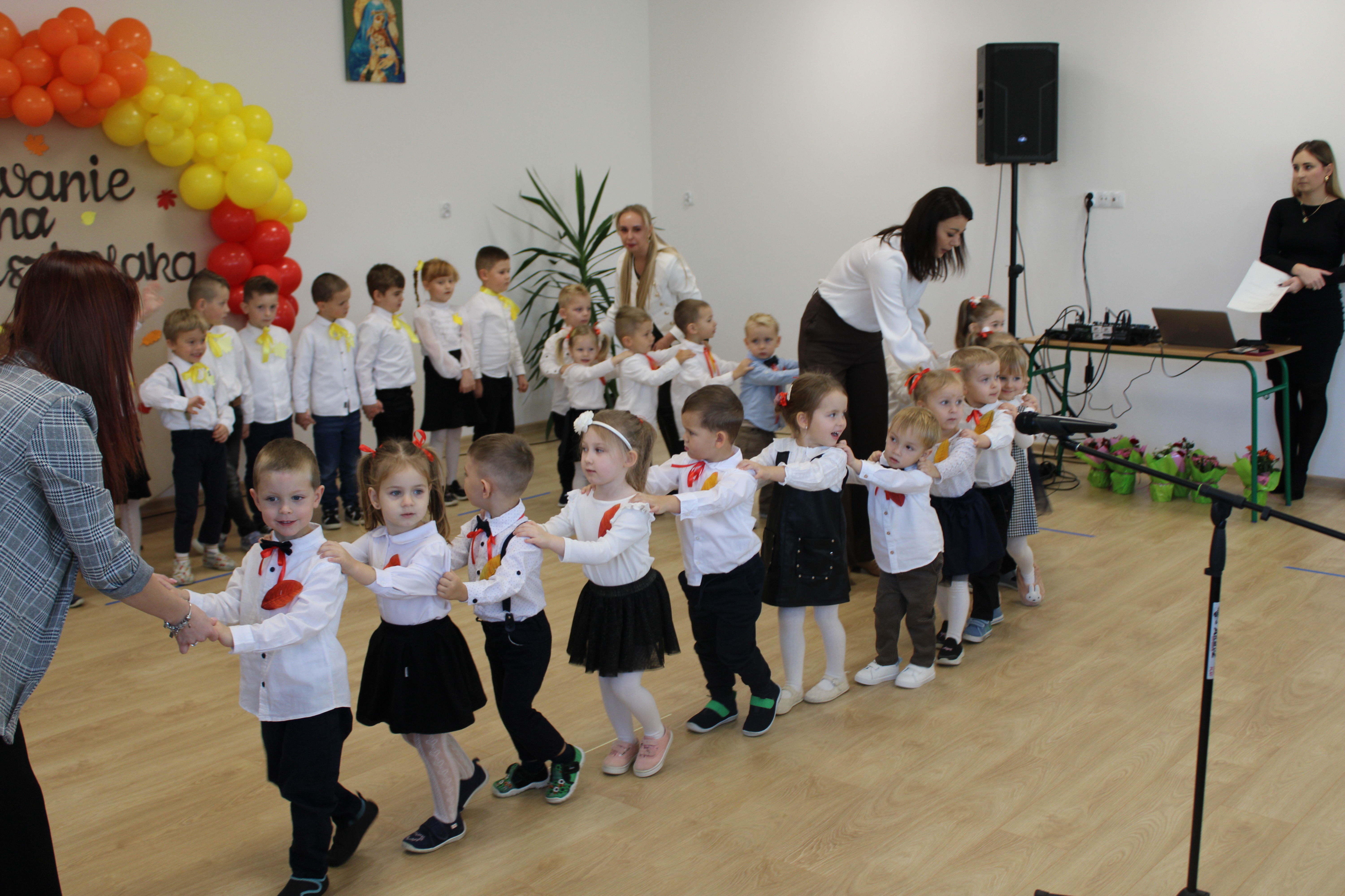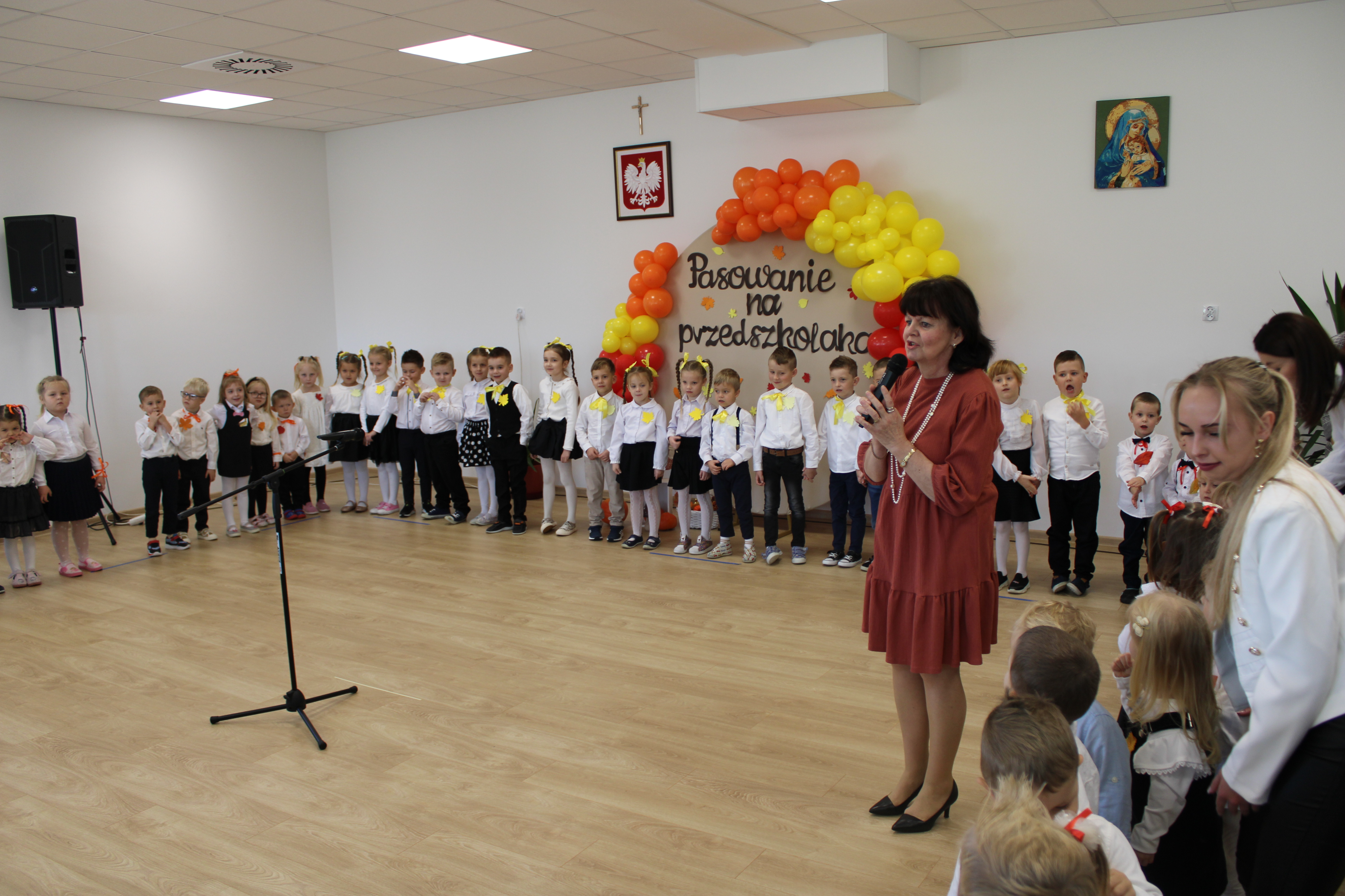 30 października w Samorządowym Przedszkolu we Florynce odbyła się uroczystość Pasowania na Przedszkolaka – jeden z najważniejszych dni w życiu naszych najmłodszych wychowanków. Wśród zaproszonych gości znalazła się Pani Dyrektor ZSP Małgorzata Strytyńska, Pani Wicedyrektor ZSP Aneta Cygnarowicz-Aleksander, Dyrektor Samorządowego Żłobka Anna Góra oraz Rodzice pasowanych w tym dniu dzieci. Dzieci z grup „Zuchy”, „Łowcy Przygód” oraz „Odkrywcy” zaprezentowały piękną część artystyczną, podczas której z dumą śpiewały piosenki, tańczyły i recytowały wiersze. Najważniejszym momentem uroczystości było symboliczne pasowanie, którego dokonała Pani Dyrektor ZSP we Florynce. Serdecznie gratulujemy wszystkim dzieciom, a rodzicom dziękujemy za obecność oraz wspólne przeżywanie tych chwil.