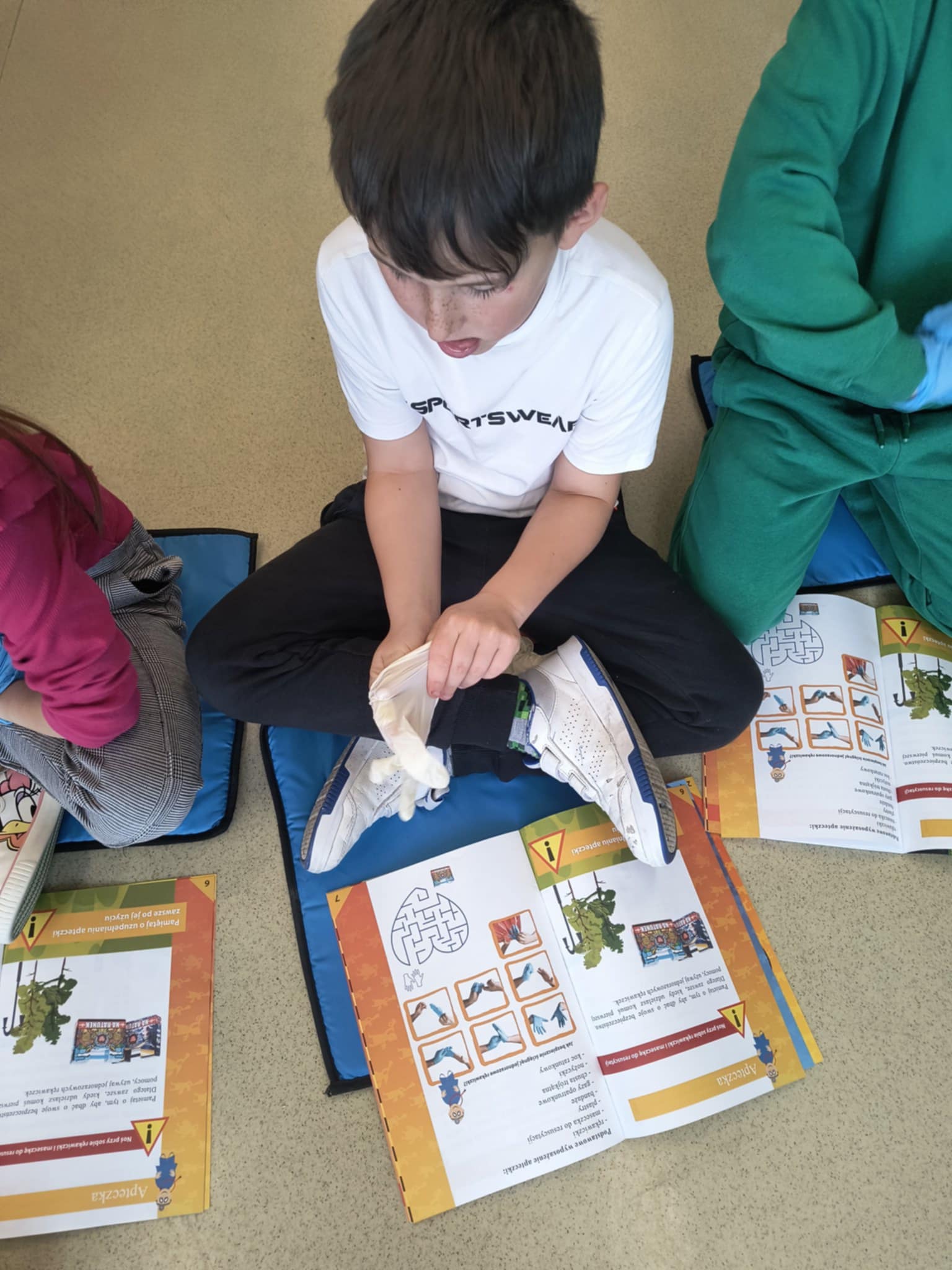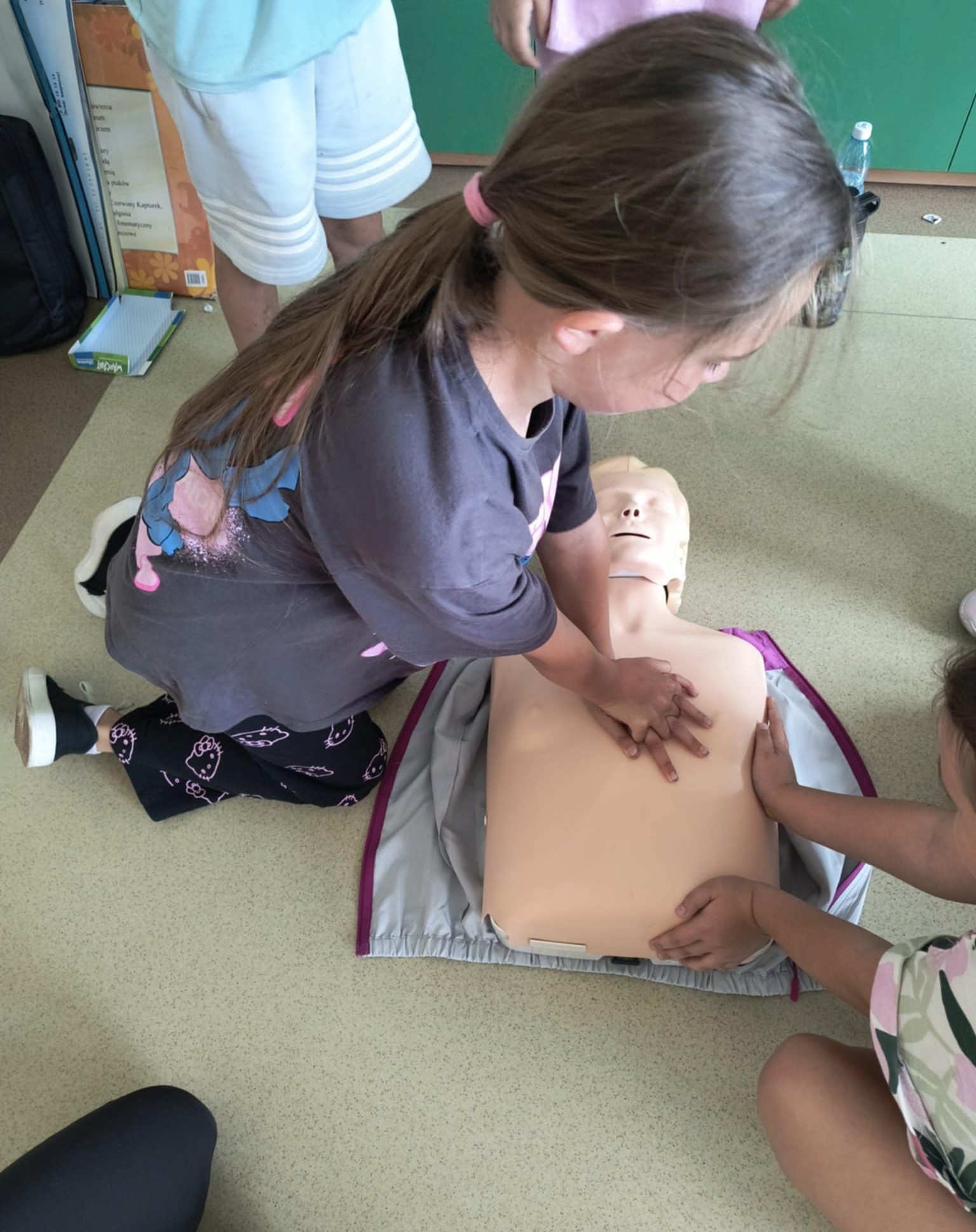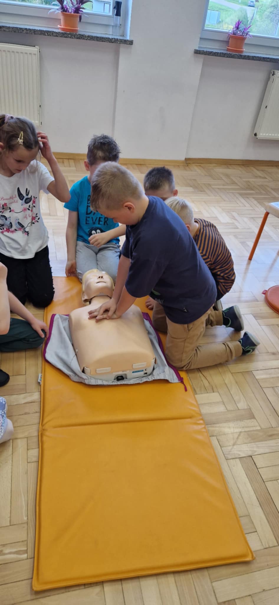 Kończący się rok szkolny to czas podsumowań, wspomnień minionych wydarzeń, imprez czy podjętych inicjatyw. W tym miejscu, pragniemy wrócić pamięcią do programu „Ratujemy i Uczymy Ratować”, który był realizowany w klasie 1b i klasie 2. Jego przeprowadzenie było możliwe po wcześniejszym szkoleniu wychowawczyń tychże klas zorganizowanym przez Fundację WOŚP. Przystępując do programu, nasza szkoła otrzymała fantomy do nauki resuscytacji, podręczniki dla nauczycieli i uczniów, atrapy AED, tekturowe telefony komórkowe do nauki wzywania pomocy oraz inne niezbędne materiały dydaktyczne. Podczas zajęć uczniowie dowiedzieli się, jak prawidłowo ocenić stan poszkodowanego, ćwiczyli wzywanie pomocy oraz wykonywali RKO. Wychowawczynie szczegółowo omówiły i zademonstrowały każdy etap działania, a następnie uczniowie mogli przećwiczyć zdobyte umiejętności na fantomach. Zajęcia spotkały się z dużym zainteresowaniem, a dzięki praktycznemu charakterowi spotkań dzieci miały okazję nie tylko zdobyć cenną wiedzę, ale również przełamać obawy związane z udzielaniem pierwszej pomocy. Jesteśmy dumni z postawy obu klas – ich zaangażowanie, ciekawość świata i gotowość do nauki są naprawdę imponujące!