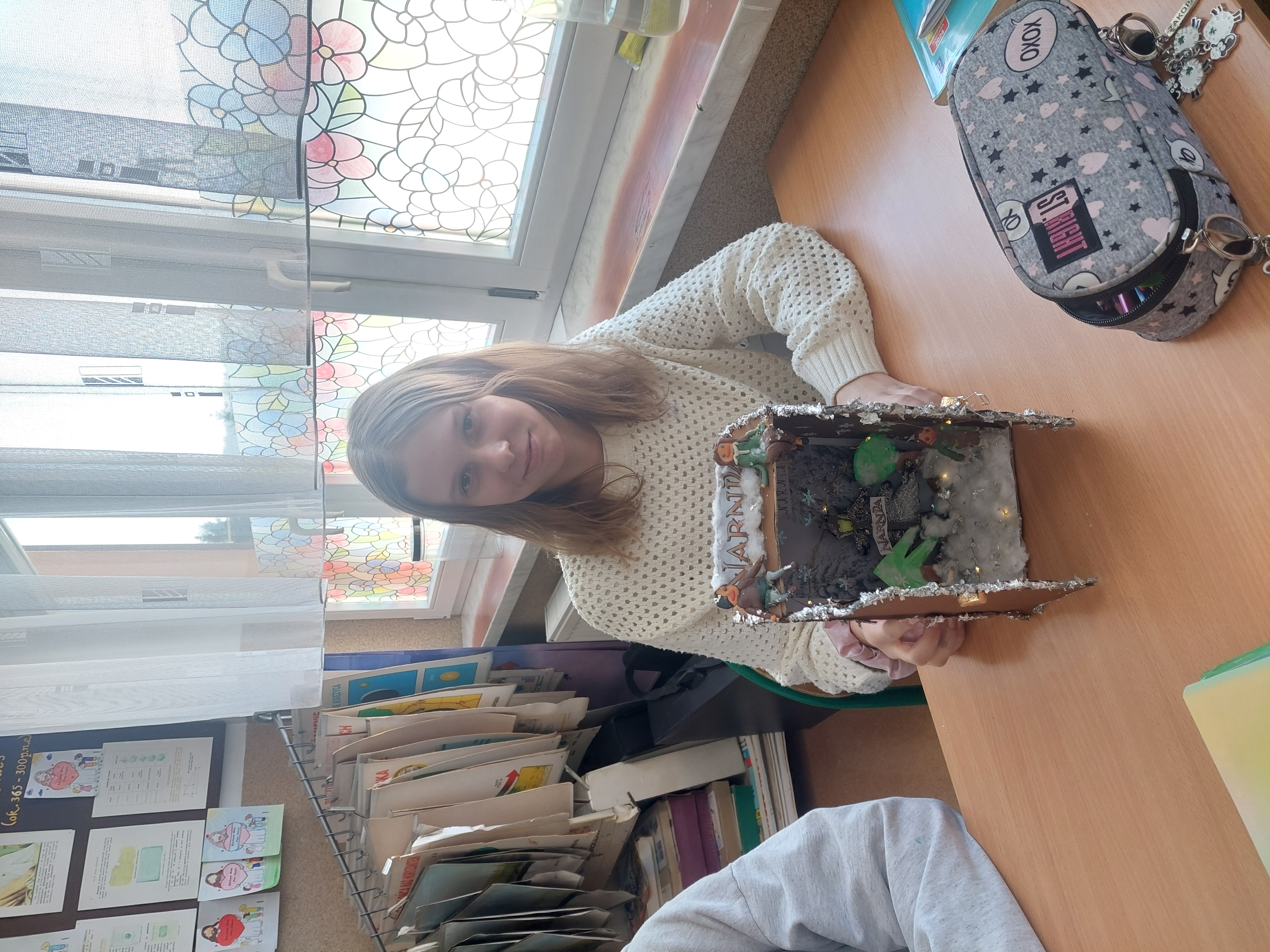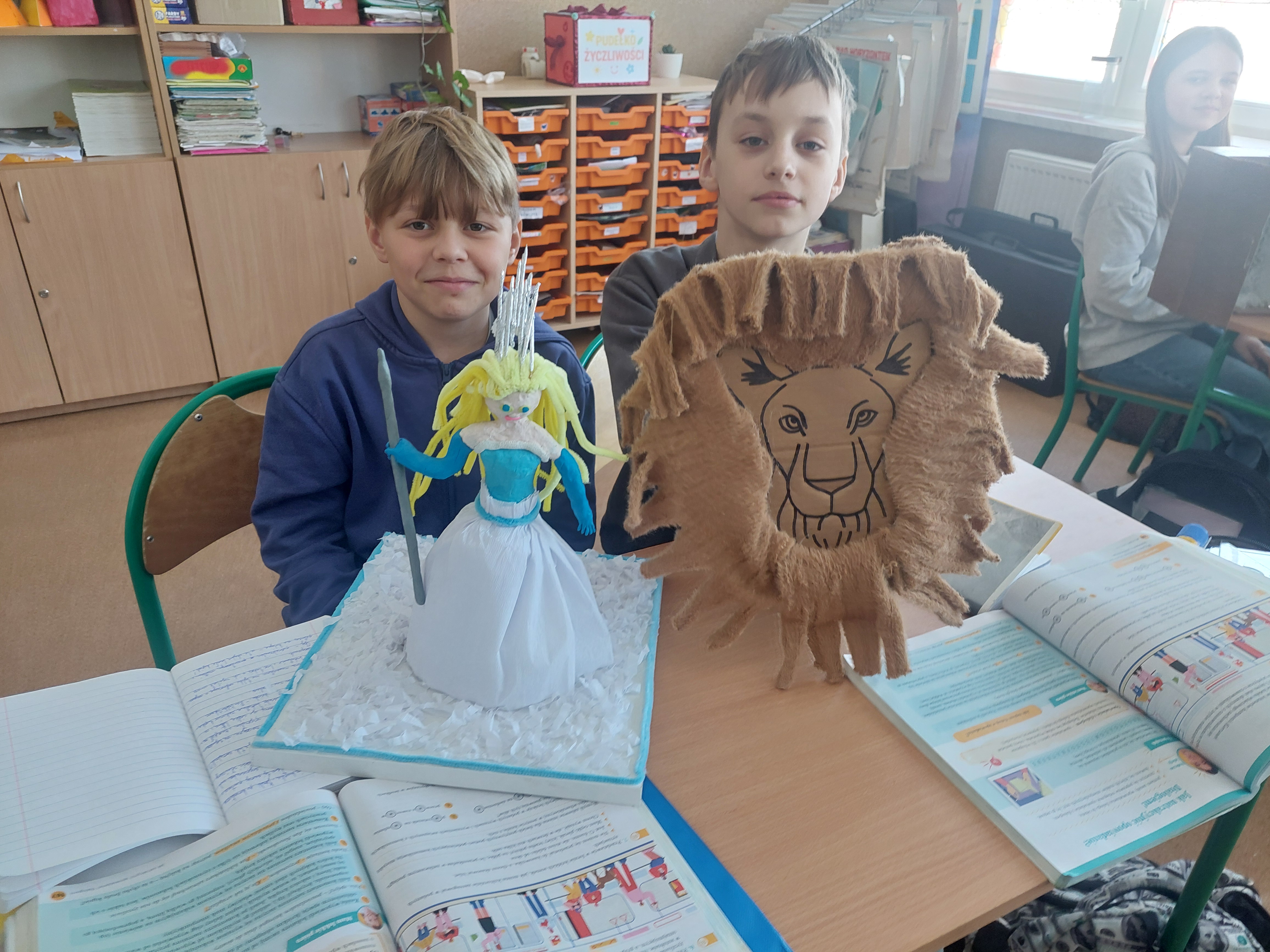 Uczniowie wykonali projekt inspirowany lekturą "Opowieści z Narnii". Zadaniem pięcioklasistów było stworzenie własnej interpretacji magicznej szafy, która prowadzi do świata Narnii. W ramach projektu dzieci zamieniły kartonowe pudełka, drewniane skrzynki w szafy, w które zamknęły  informacje o świecie przedstawionym omawianej lektury i ciekawostki, każdy według własnego pomysłu. Oprócz szaf niektórzy uczniowie wykonali postać Białej Czarownicy i lwa Aslana. Podczas finałowej prezentacji okazało się, że literatura może być świetną inspiracją do twórczych działań.