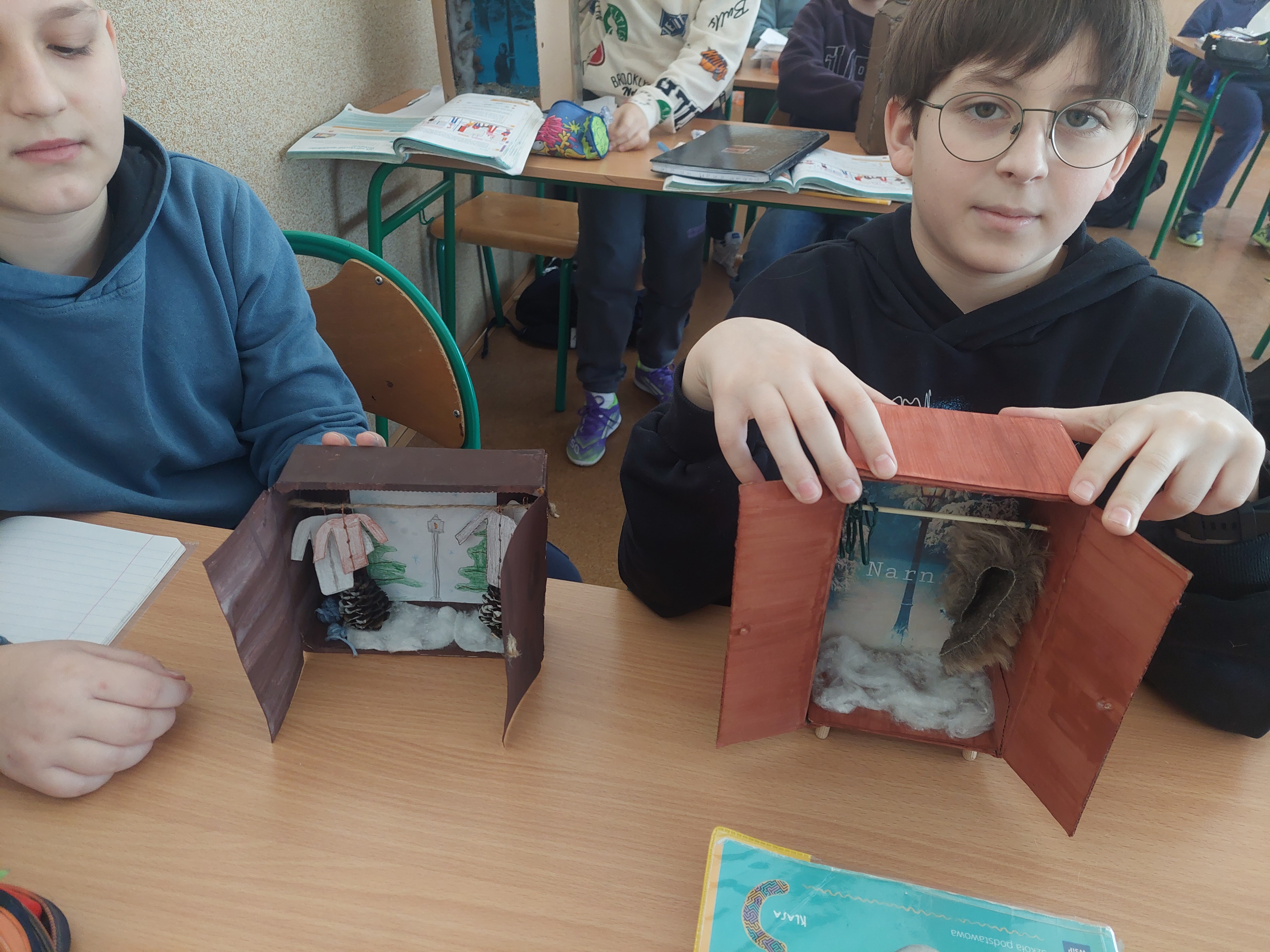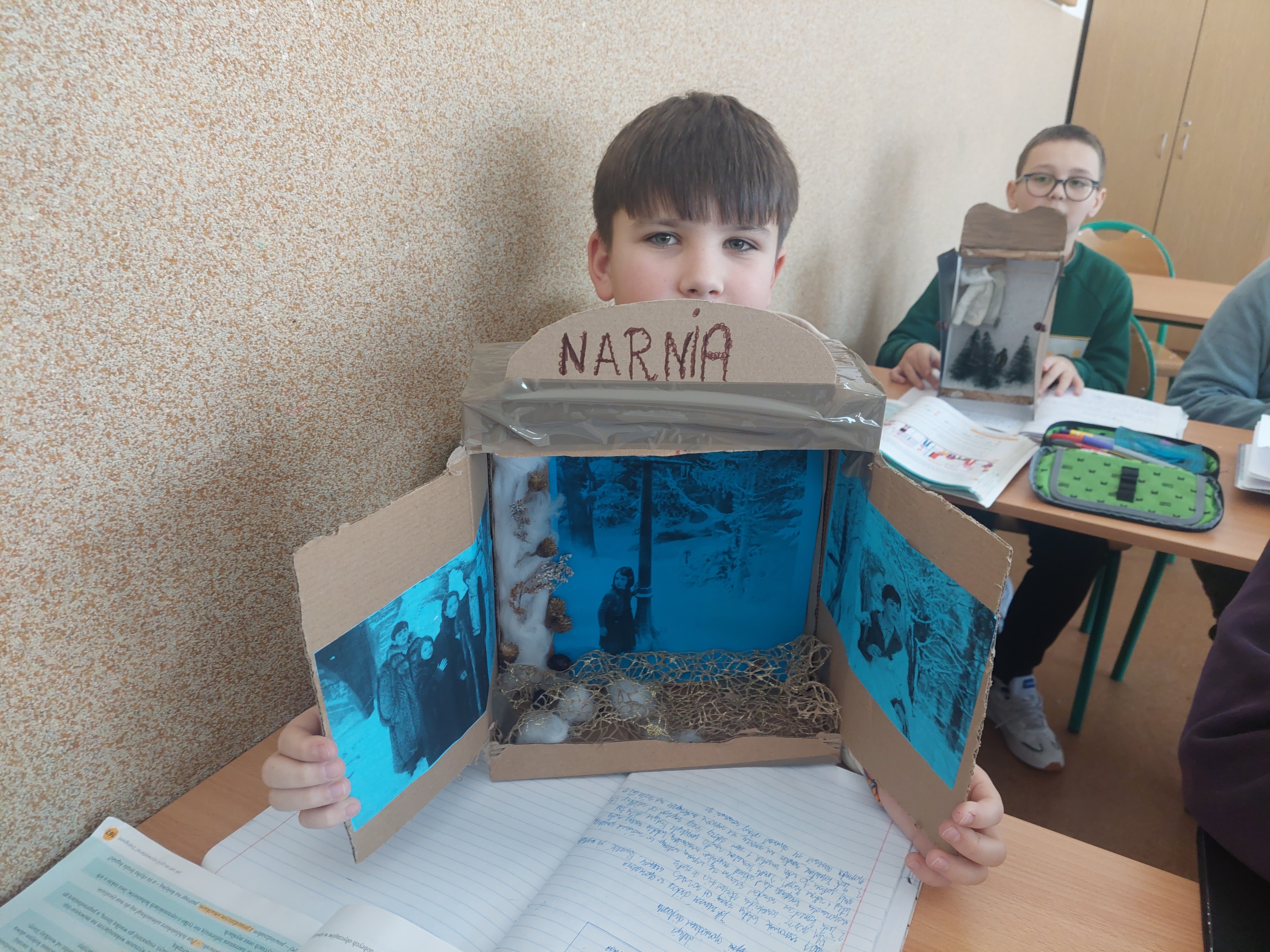 Uczniowie wykonali projekt inspirowany lekturą "Opowieści z Narnii". Zadaniem pięcioklasistów było stworzenie własnej interpretacji magicznej szafy, która prowadzi do świata Narnii. W ramach projektu dzieci zamieniły kartonowe pudełka, drewniane skrzynki w szafy, w które zamknęły informacje o świecie przedstawionym omawianej lektury i ciekawostki, każdy według własnego pomysłu. Oprócz szaf niektórzy uczniowie wykonali postać Białej Czarownicy i lwa Aslana. Podczas finałowej prezentacji okazało się, że literatura może być świetną inspiracją do twórczych działań.