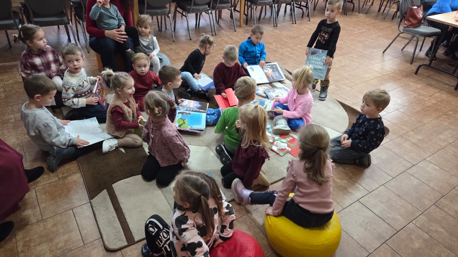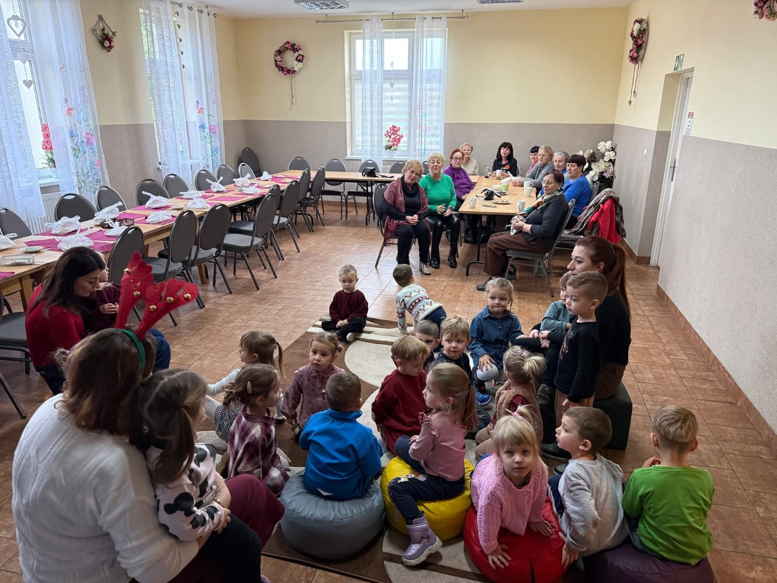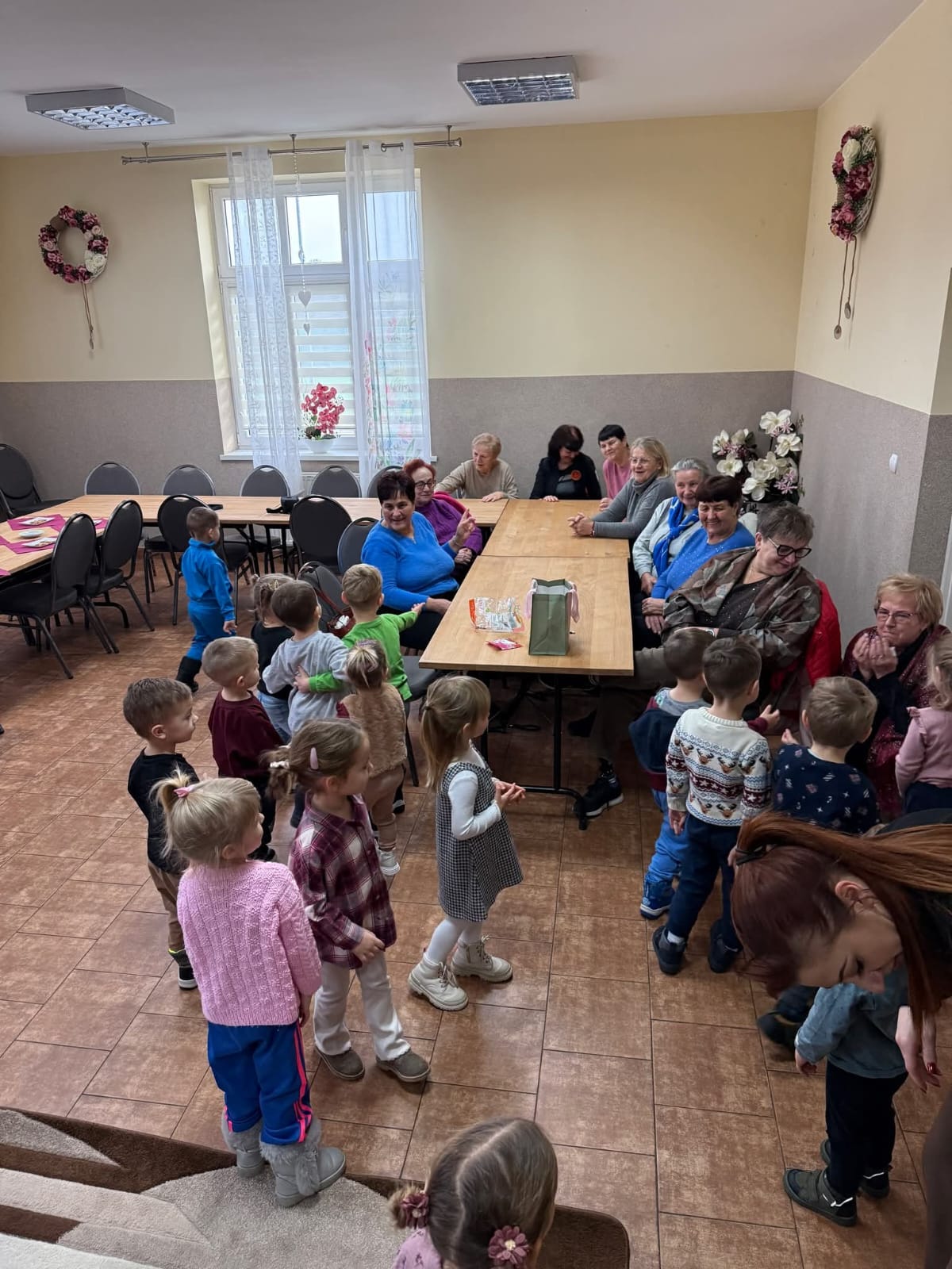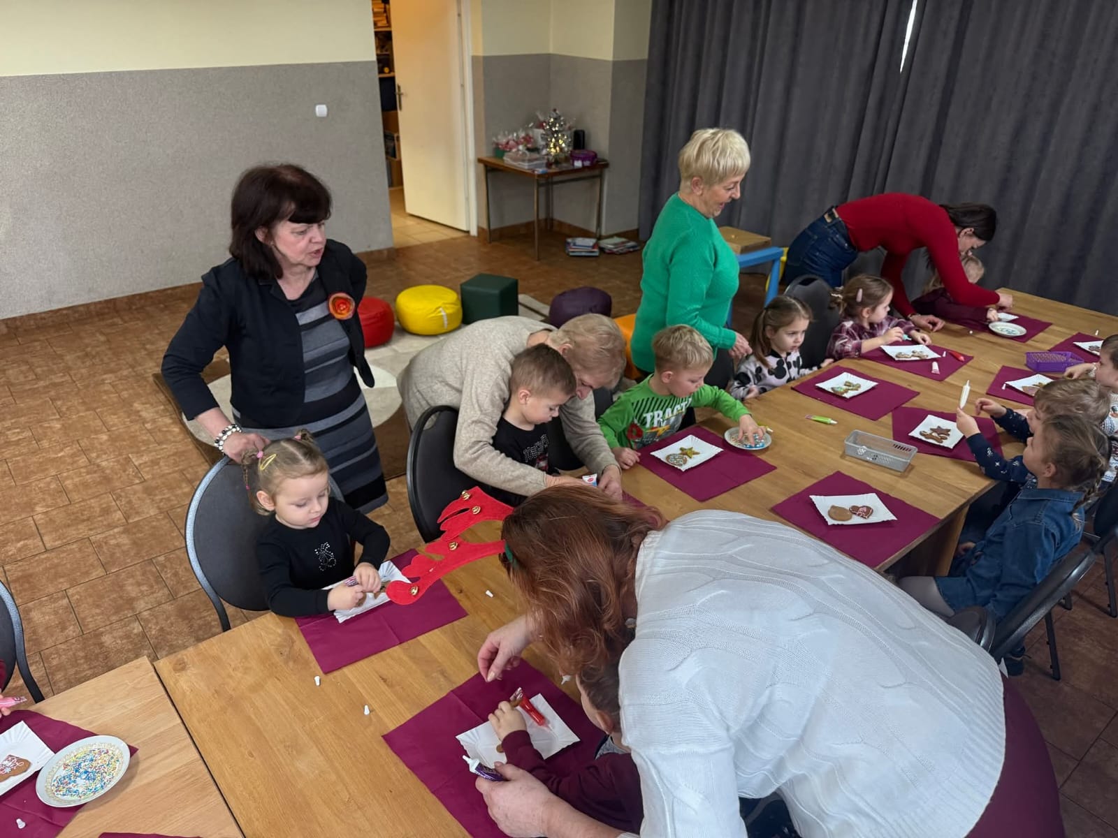 10 grudnia grupa Zuchów oraz Łowców Przygód odwiedziła Dom Kultury we Florynce. Przedszkolaki spotkały się z przedstawicielami Koła Seniora wraz z opiekunem Panią Joanną Witek. Podczas tego wyjątkowego spotkania dzieci wysłuchały treść książki pt: „Opowieść wigilijna” oraz „Miś i świąteczna przygoda”. Dodatkowo dzieci oglądały świąteczne książki oraz wzięły udział w zabawie ruchowej obrazującej pieczenie pierniczków. Najważniejszym punktem spotkania było wspólne dekorowanie pierniczków, które przyniosło dzieciom najwięcej radości. Na zakończenie dzieci otrzymały od Seniorów własnoręcznie przez nich wykonany prezent, w postaci krasnala zrobionego z włóczki.