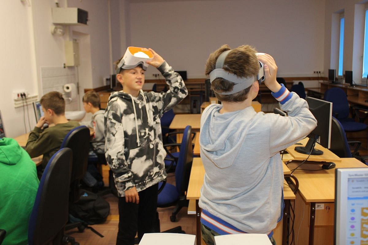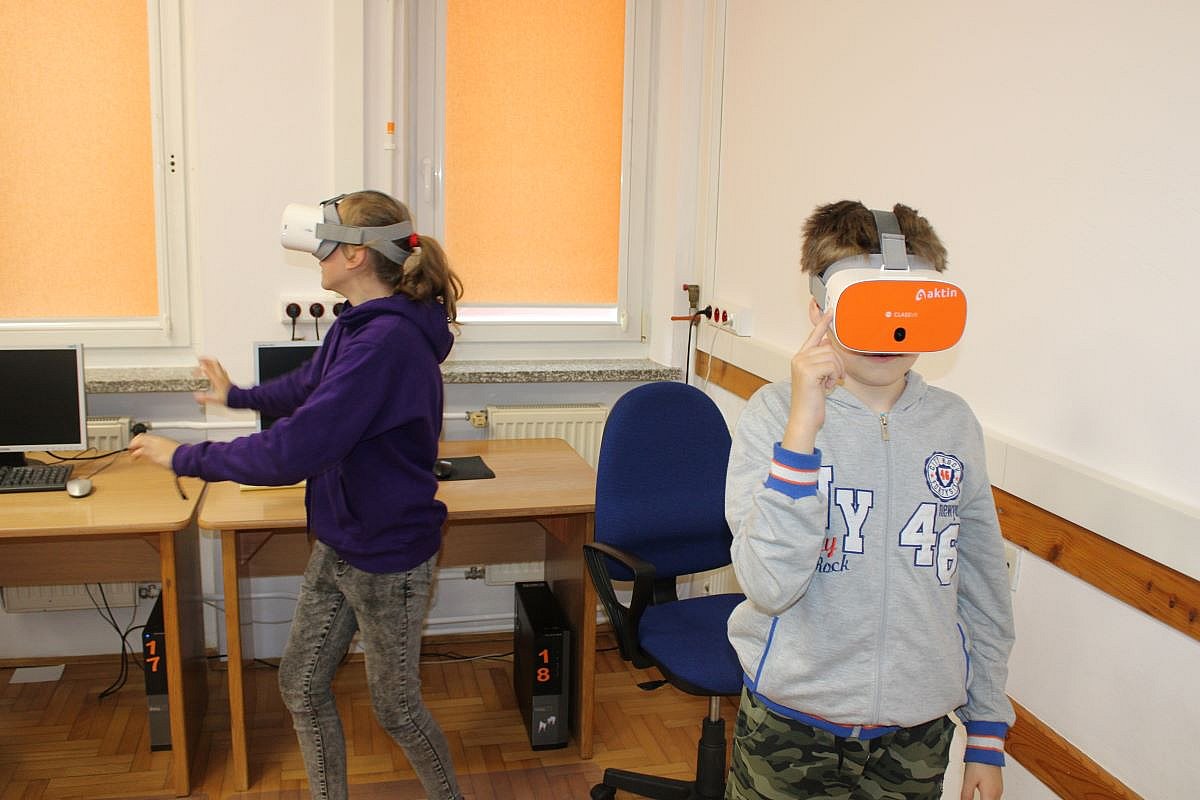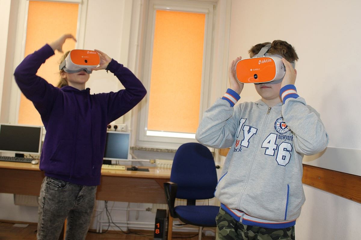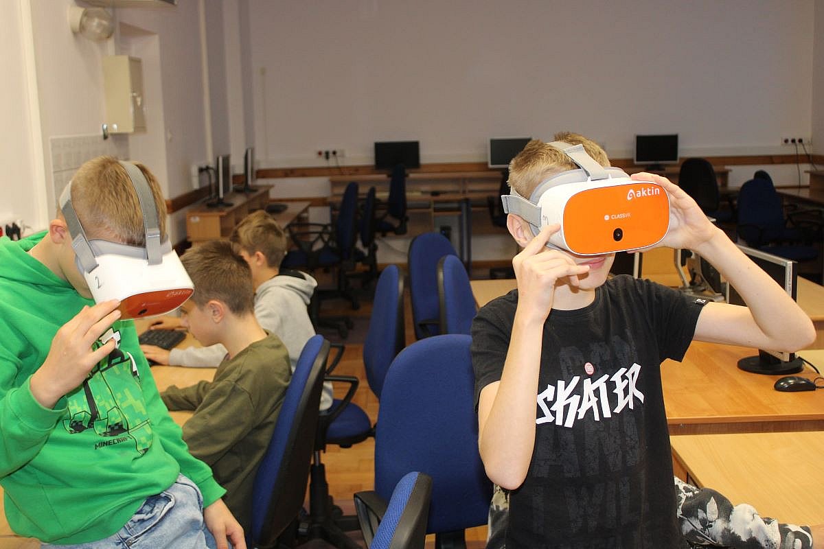 Podczas wirtualnej wycieczki, używając okularów ClassVR, uczniowie klas 6 i 7 szacowali różne ilości danych obiektów. Oglądając obiekty w okularach próbowali odpowiedzieć na pytania: Ile przedmiotów widzą w każdej scenie?; Ile różnych przedmiotów widzą? Oglądali takie obrazy jak: Wyspa Amedee: ryby; Bayern Monachium: widzowie; Festiwal latarni: latarnie; Targ w Jordanii: różne rodzaje produktów rolnych; Festiwal słoneczników: słoneczniki.