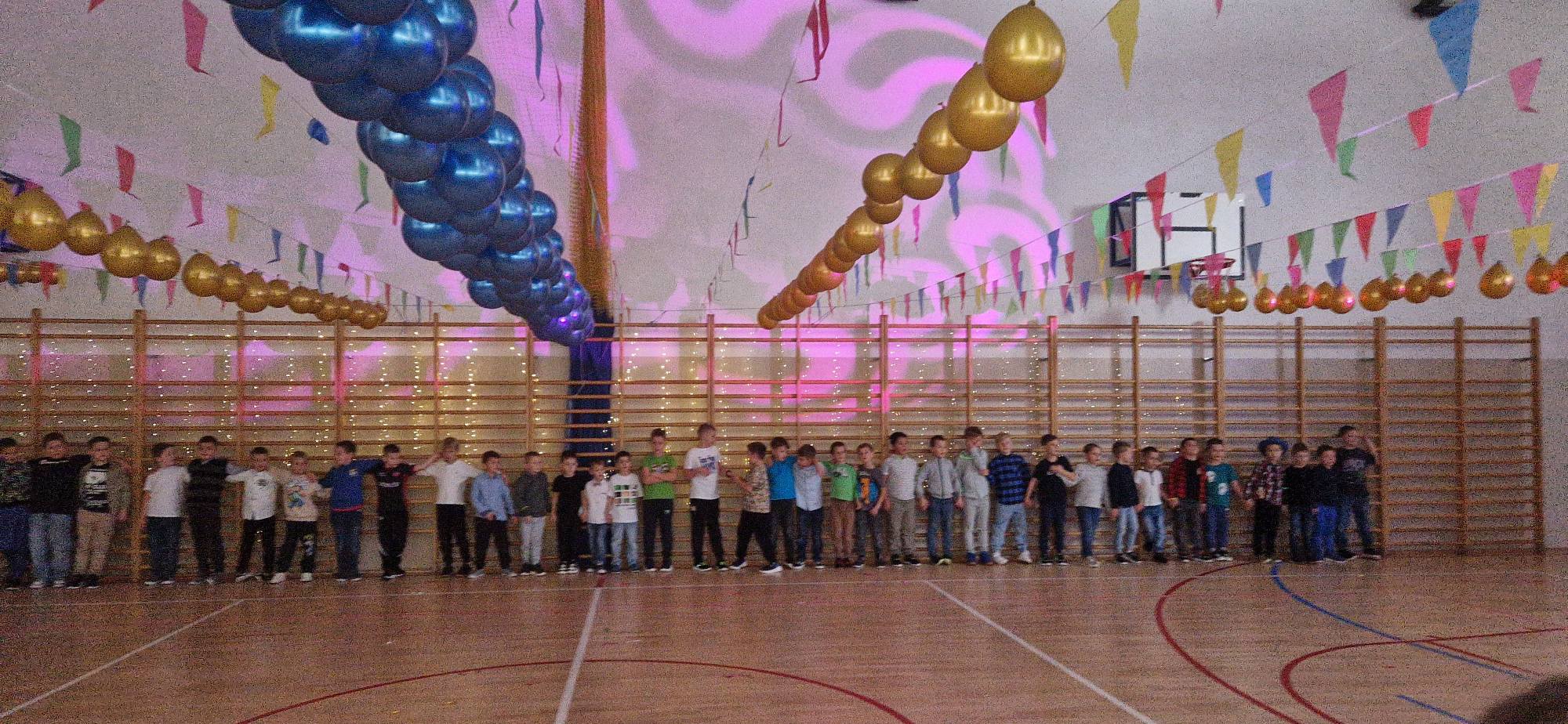 25 listopada odbyła się w naszej szkole zabawa andrzejkowa. W młodszych klasach, od rana, prowadzone były tradycyjne zabawy i wróżby związane z tym dniem. Następnie wszyscy uczniowie, podzielenia na grupy, wzięli udział w dyskotece na sali gimnastycznej. Zabawa była doskonała, gdyż Dj oprócz szalonych i energicznych tańców, zorganizował mnóstwo wciągających zabaw i konkursów. W najmłodszej grupie nie zabrakło też wyjątkowego gościa, którym była gigantyczna maskotka tygrysa, towarzysząca dzieciom na parkiecie. Bardzo dziękujemy Radzie Rodziców za pokrycie kosztów związanych z Dj-em, a wszystkim Rodzicom za pyszny poczęstunek, który dodawał dzieciom energii do dalszej zabawy. Szczególne podziękowania składamy pani Dorocie Lichoń oraz uczennicom z klasy 6a za zjawiskowe udekorowanie naszej sali gimnastycznej!